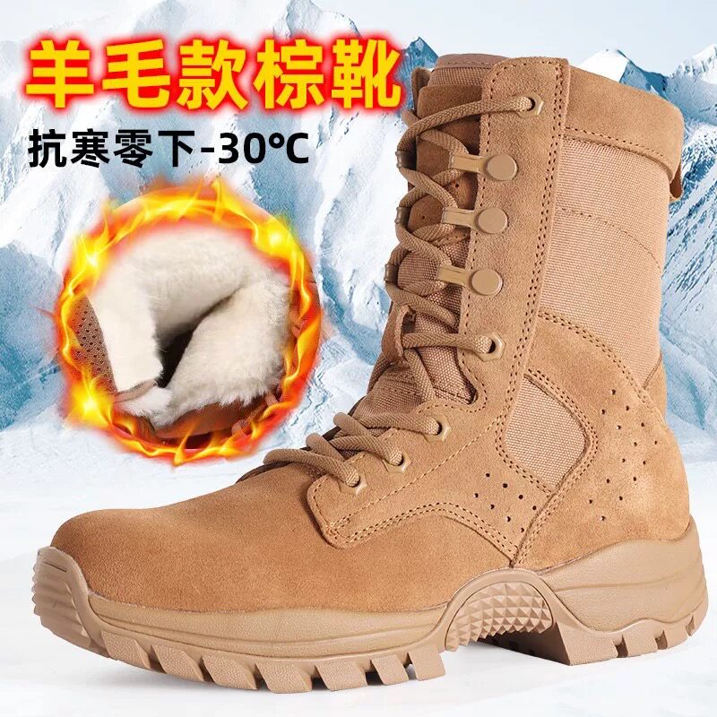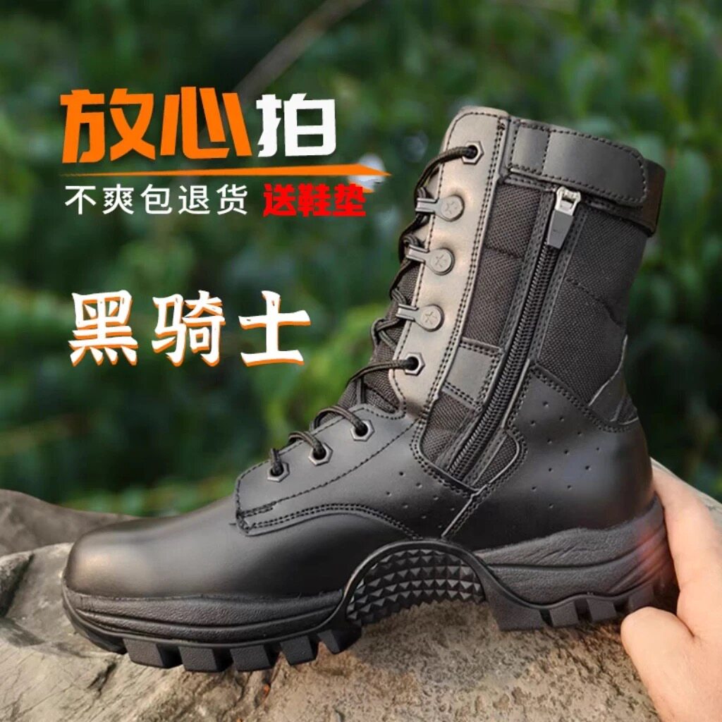 新款棕色作战靴套式作战训靴男高帮牛皮碳板登山作战鞋户外沙漠靴