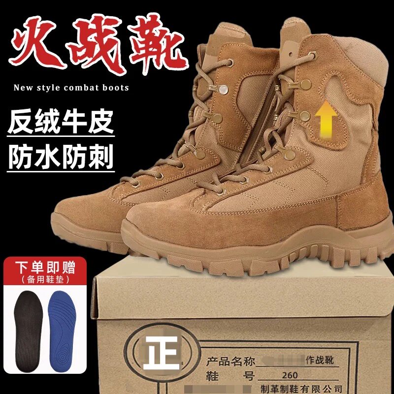大虎新式棕色户外作战训靴减震耐磨正品侧拉链防水防穿刺登山靴男
