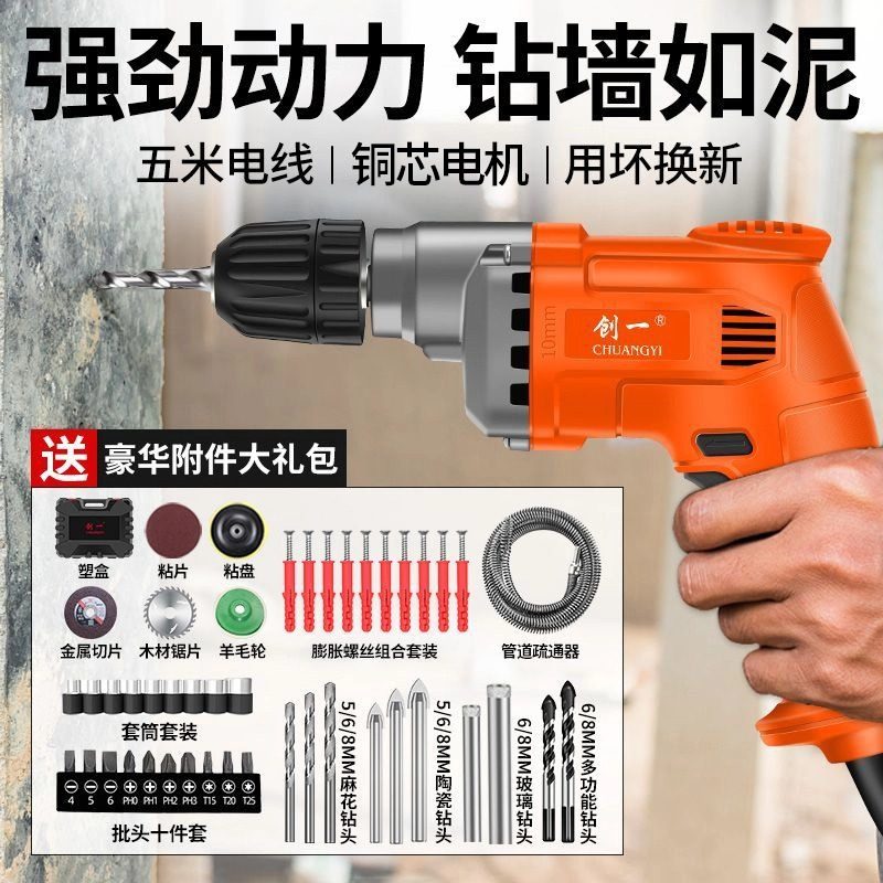 创一手电钻多功能电转电动工具家用小电手钻打孔220V手枪钻带有线