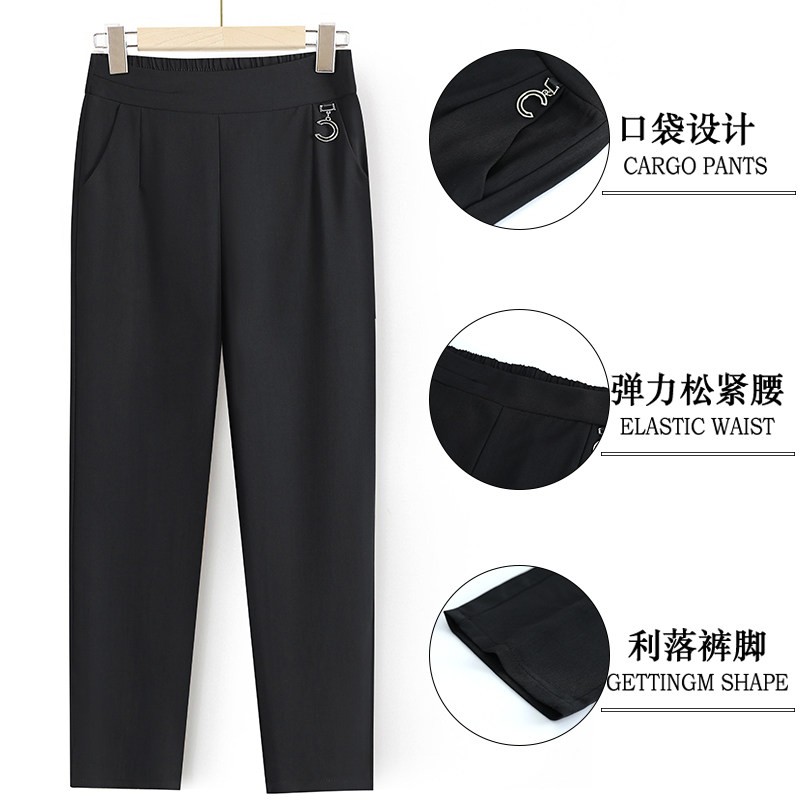 妈妈新款夏季薄款棉麻直筒裤大码宽松高腰九分裤老人松紧亚麻裤子