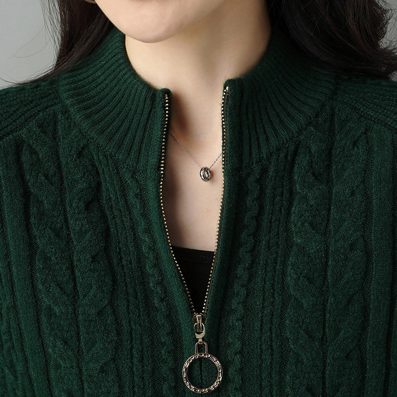 恒源祥春秋新款妈妈宽松针织开衫上衣厚毛衣立领外套韩版时尚女装
