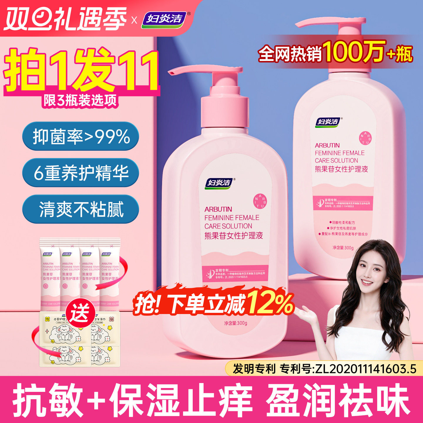 抑菌率>99% 抗敏+保湿专利 盈润祛味 亮肤