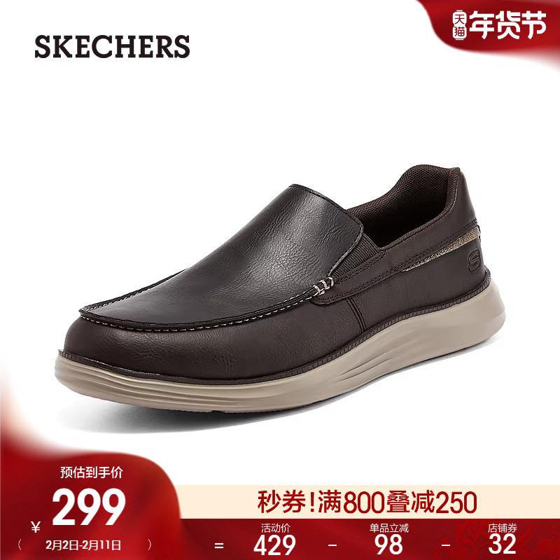 斯凯奇秋冬新款男子舒适休闲皮鞋商务鞋通勤鞋德比鞋软底上班板鞋