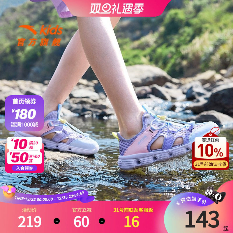 安踏女童溯溪凉鞋户外2025夏季新款透气舒适中大童女孩儿童沙滩鞋