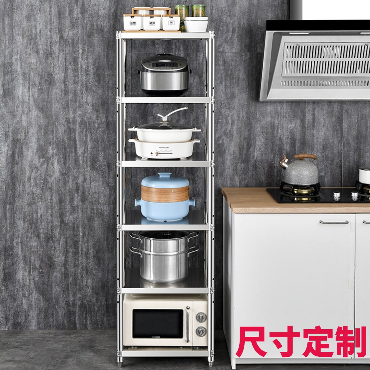 不锈钢置物架厨房落地储物层架宽3040夹缝架微波炉架多层收纳锅架