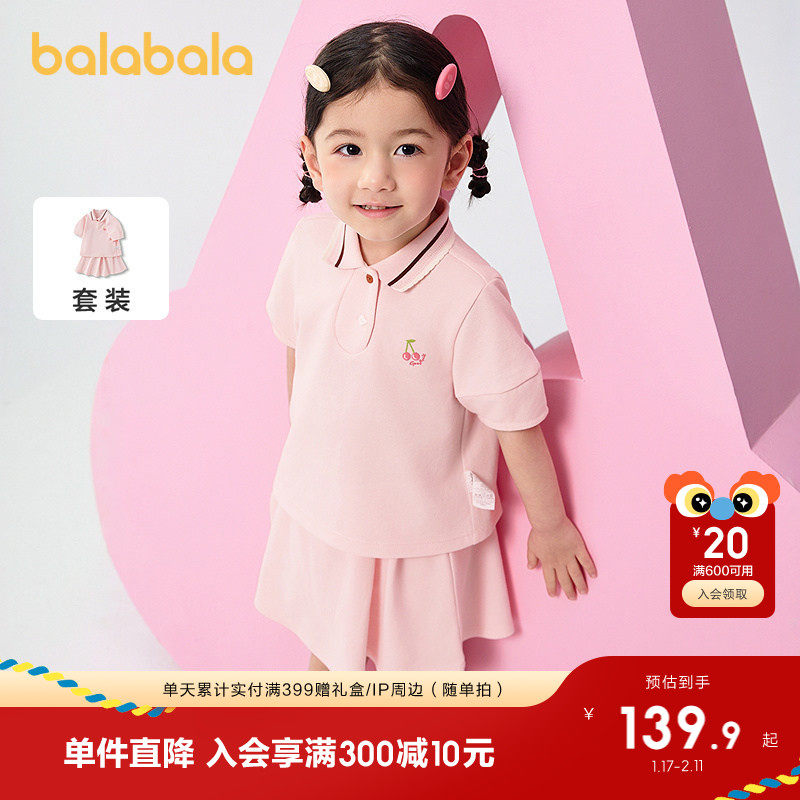 巴拉巴拉童装儿童短袖套装女童裙裤两件套2025夏新款时尚百搭洋气