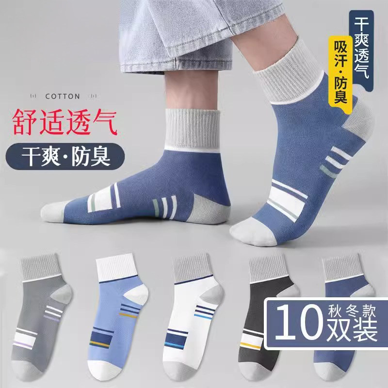 10双袜子男士吸汗防臭中筒袜春秋季袜吸汗透气运动篮球袜商务潮袜
