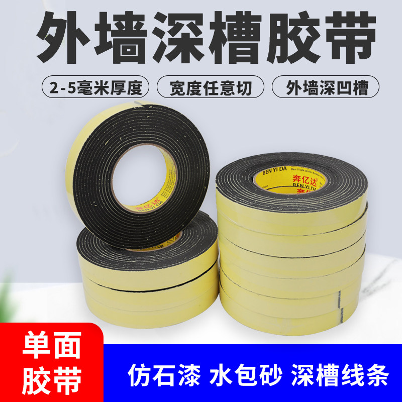 外墙施工深凹槽分格线条单面泡棉胶带仿石漆水包砂包喷砂涂料海绵