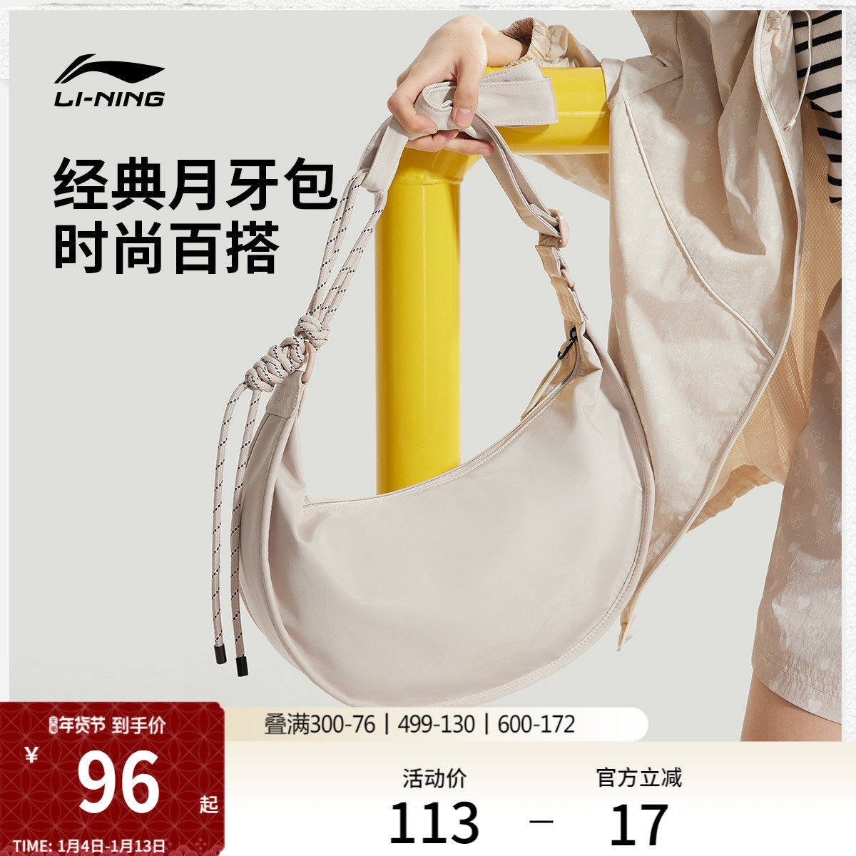 李宁斜挎包女正品百搭马年红色饺子包通勤运动休闲单肩腋下牛角包