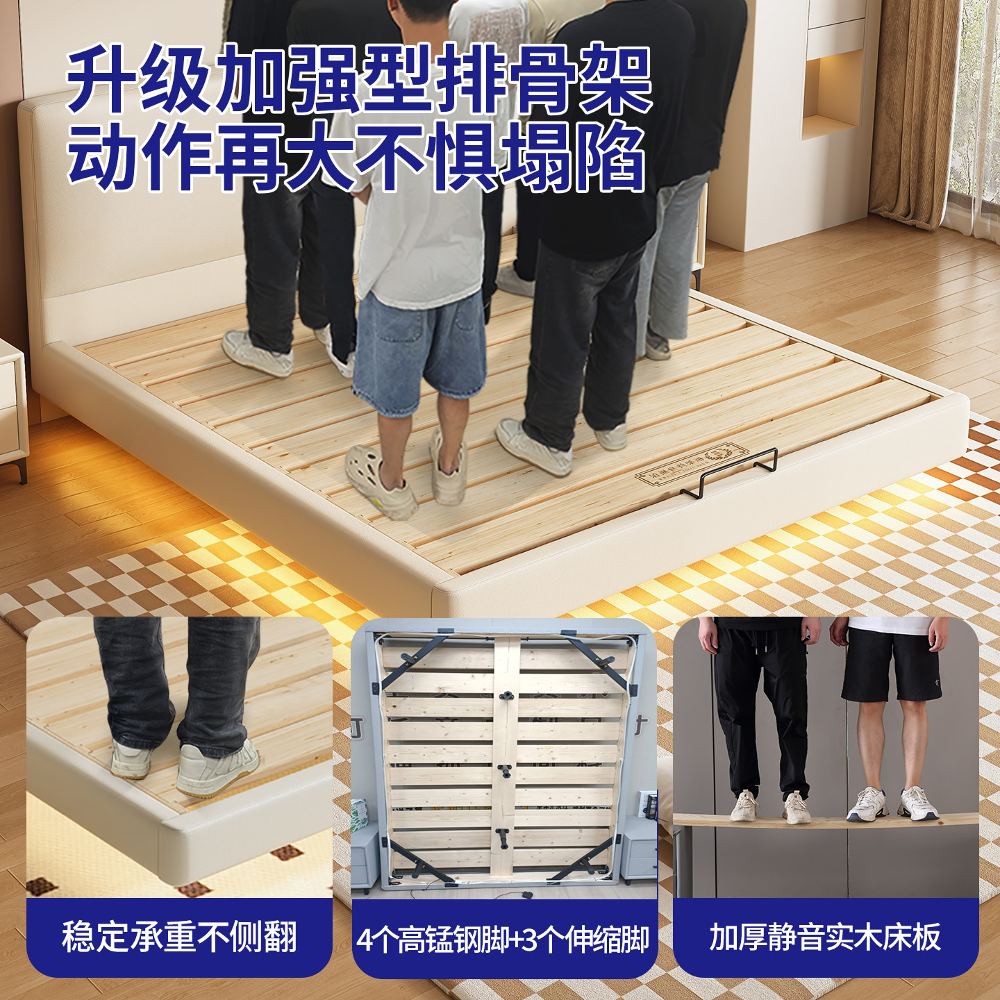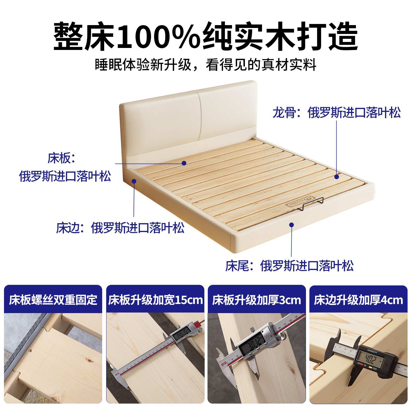 薄床头齐边床奶油风主卧齐边双人大床榫卯结构全实木床静音悬浮床