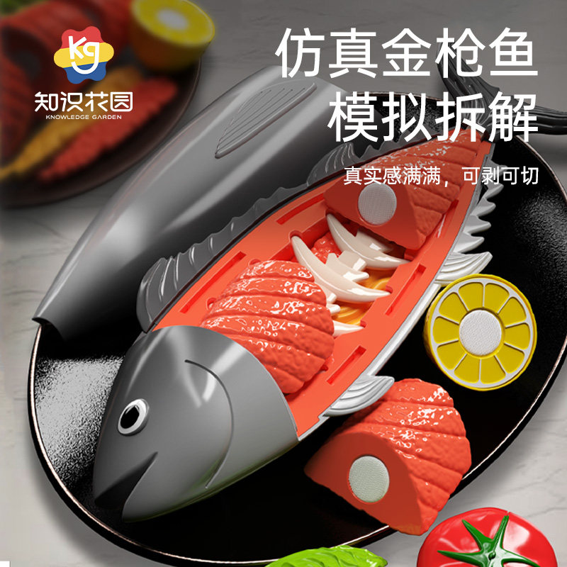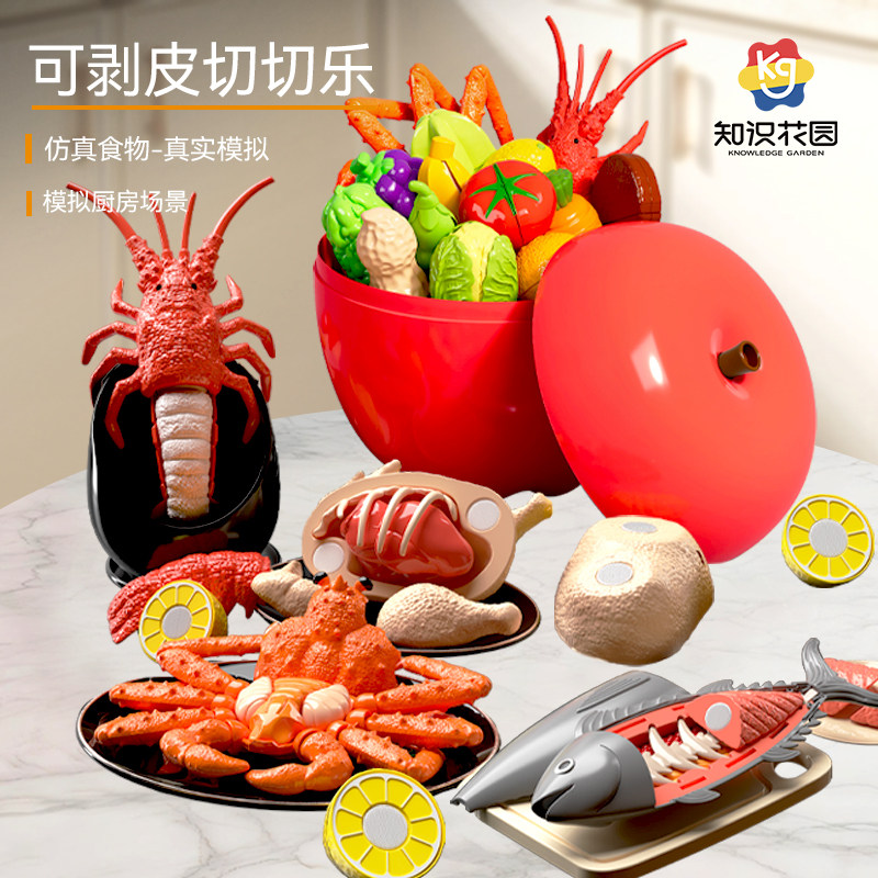 知识花园儿童切切乐龙虾帝王蟹仿真厨房做饭男女孩过家家玩具海鲜