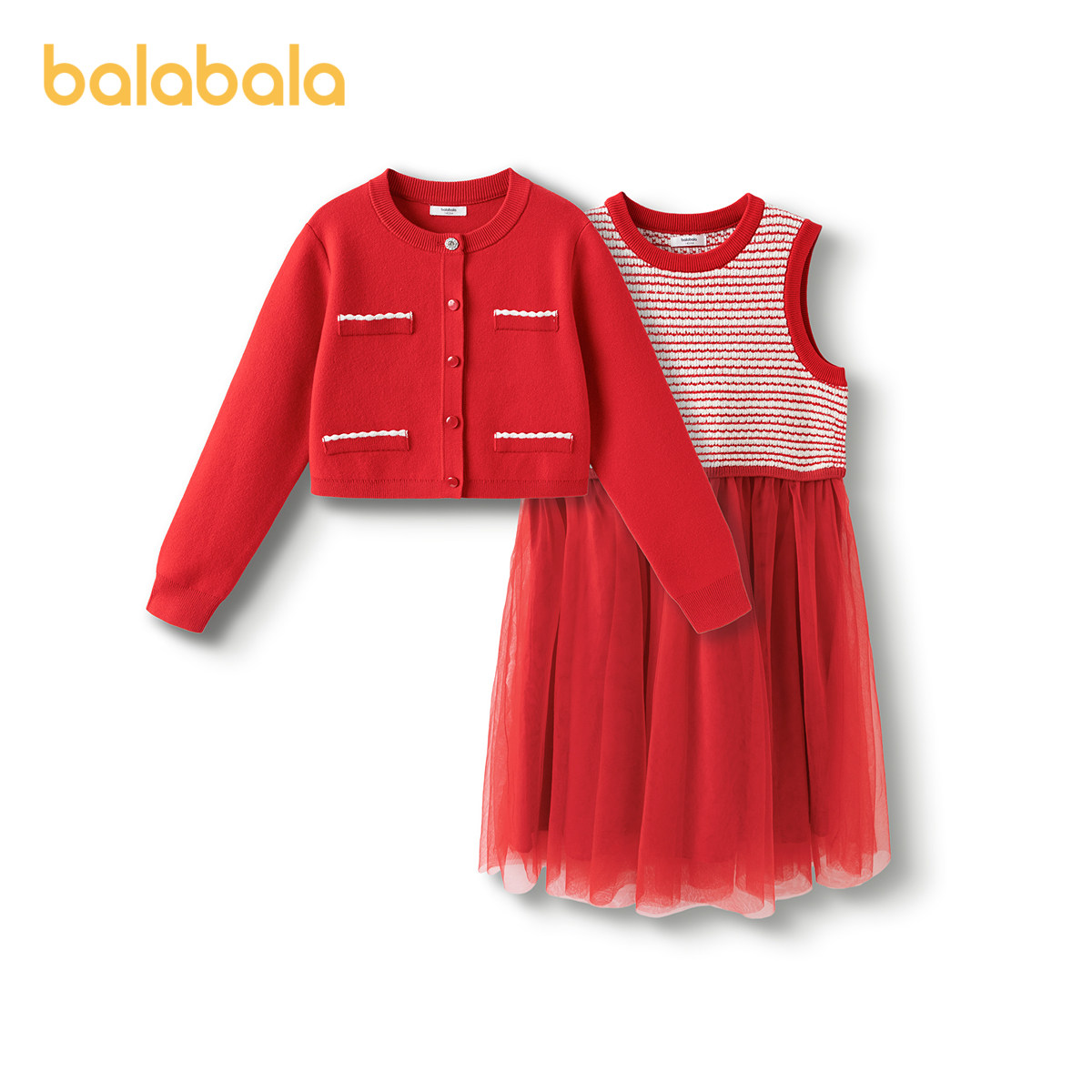 巴拉巴拉童装女童连衣裙儿童裙子针织网纱春装两件套洋气时尚潮