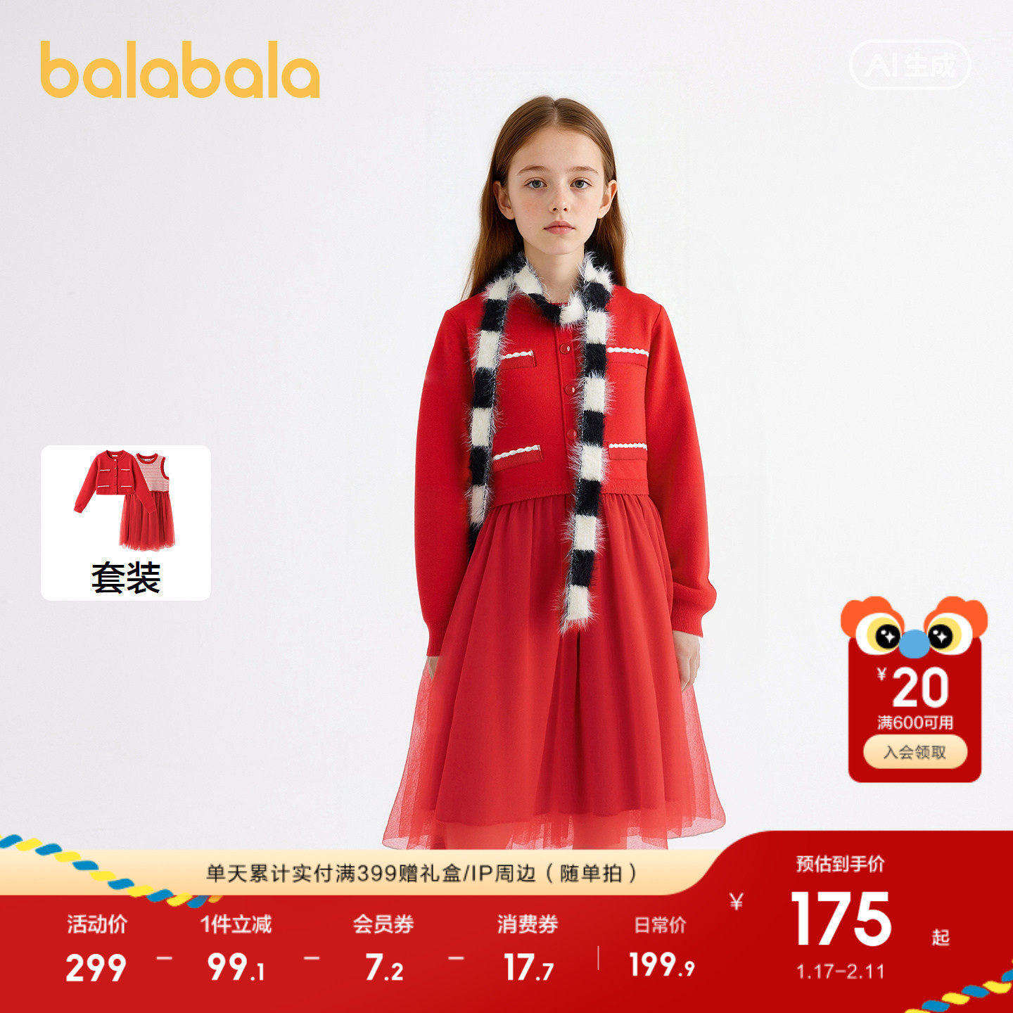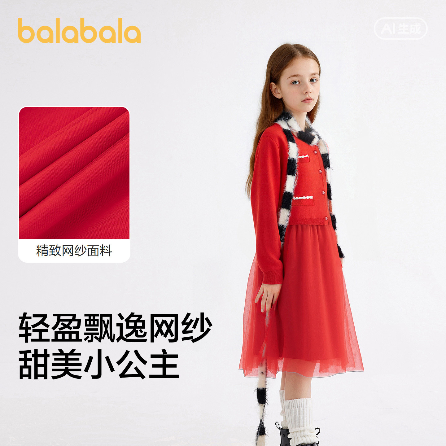 巴拉巴拉balaOne童装女公主裙2025秋冬新款儿童连衣裙针织网纱裙