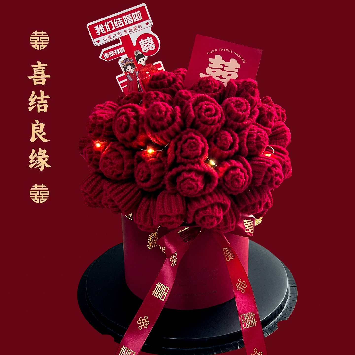 新婚礼物结婚订婚送新娘玫瑰花毯子成品花束毛毯百喜毯玫瑰花毯