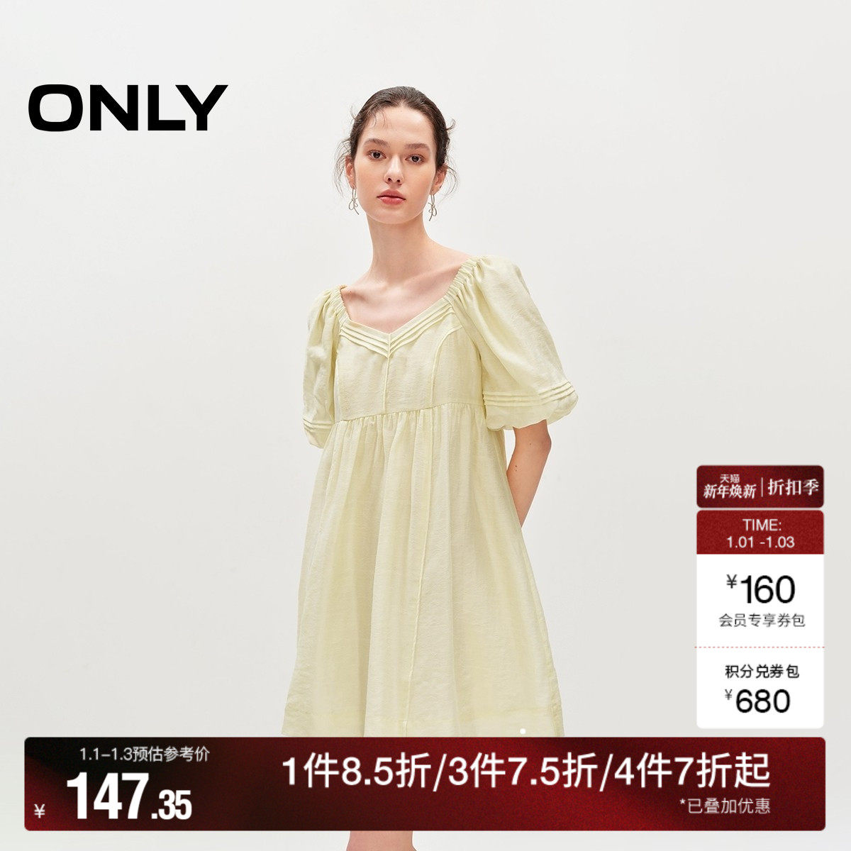【ONLY奥莱】夏季通勤显瘦A字泡泡袖V领短裙连衣裙女