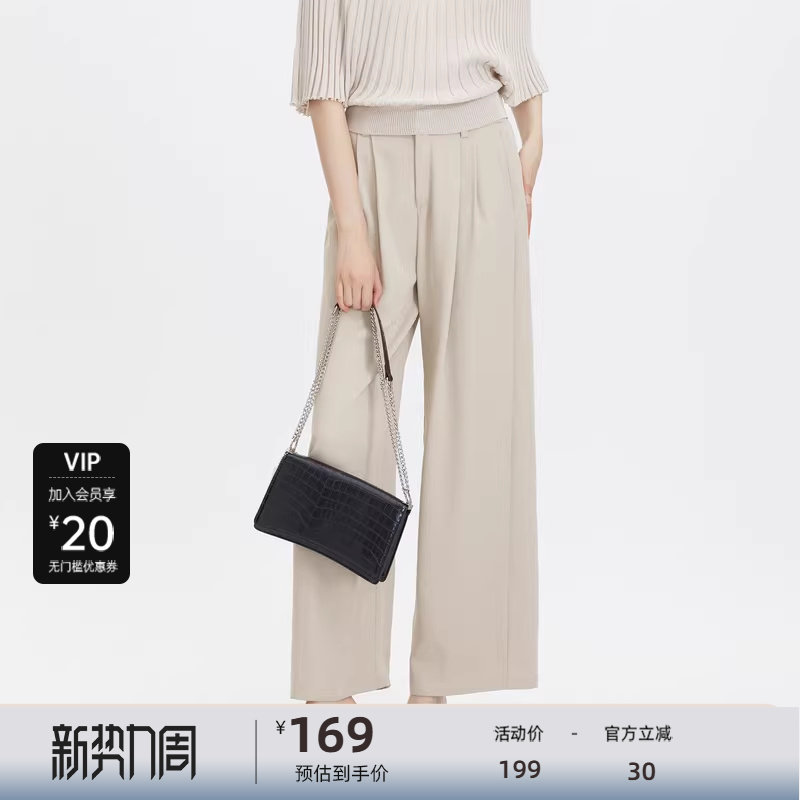sdeer圣迪奥女装松紧拼接压褶阔腿雪纺长裤S232Z0811