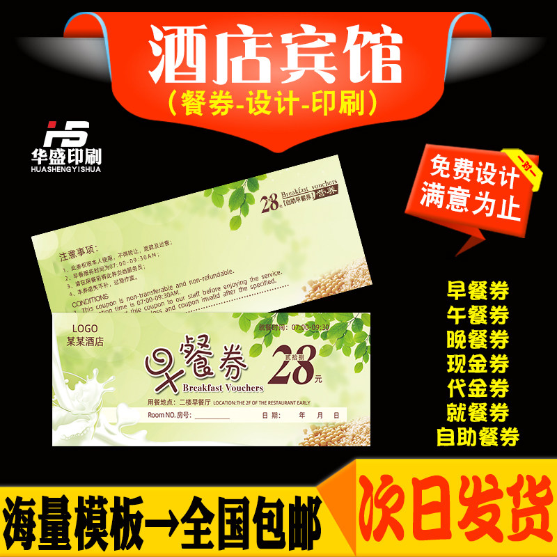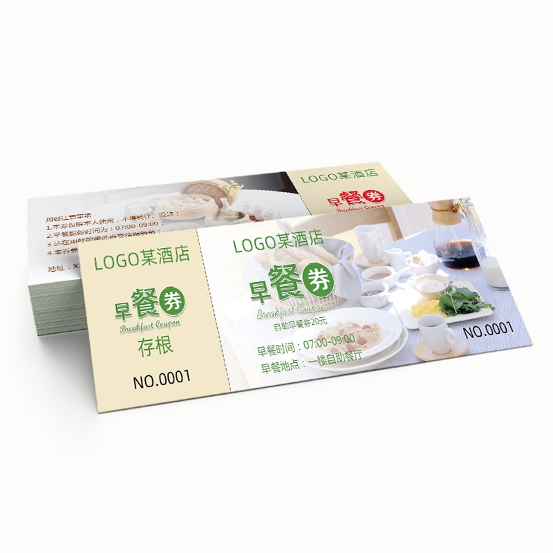 酒店自助早餐券定制食堂就餐卡制作午餐现金劵晚餐饮店优惠卷订做
