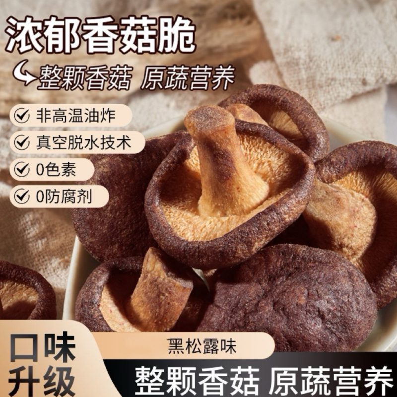 黑松露味香菇脆100g袋装即食非油炸蘑菇干脆片冻干休闲小吃零食品