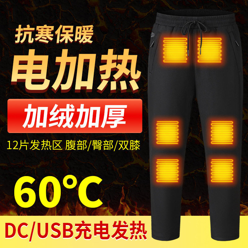 12区电热裤子智能充电发热裤男女加绒加厚保暖护膝自发热棉裤冬季