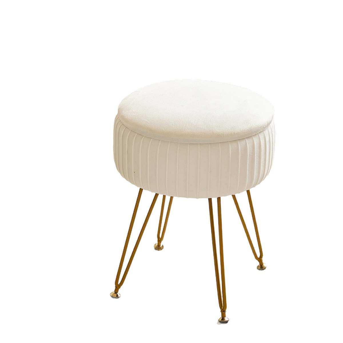 卧室化妆凳北欧创意收纳箱小茶几桌储物金属腿沙发搁脚凳布艺圆凳