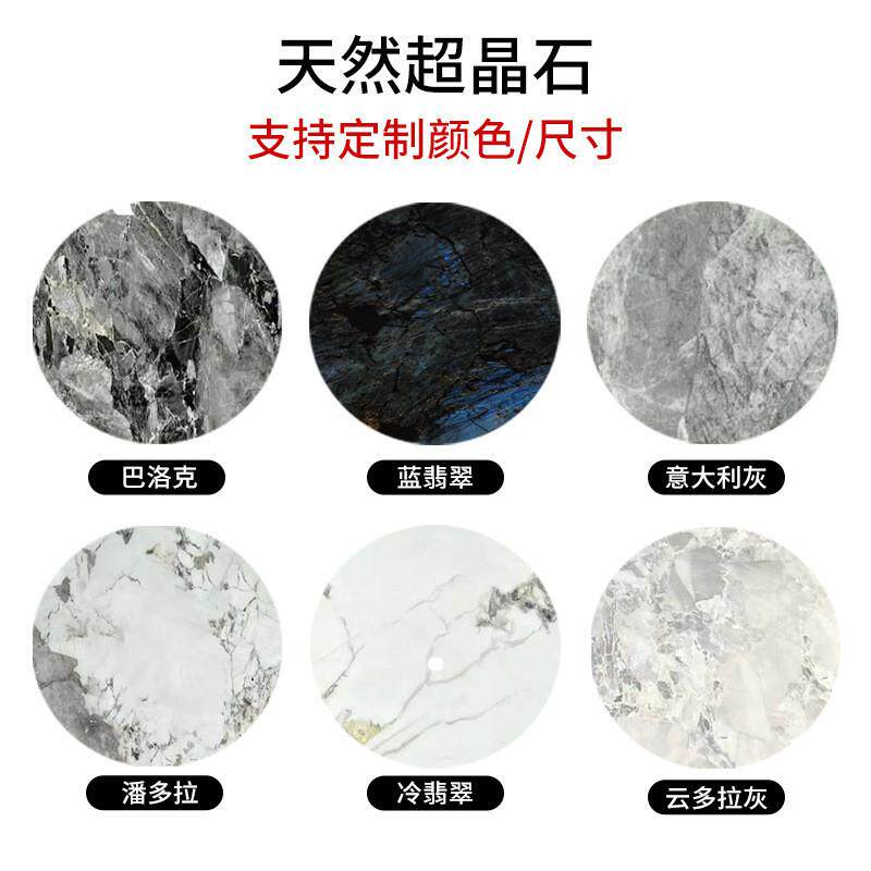 天然大理石圆餐桌奢石现代轻奢客厅高端蓝翡翠微晶石超晶石餐桌椅
