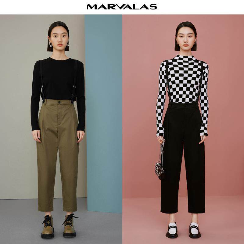 曼德诗工装背带哈伦裤2025春夏新款休闲裤百搭烟管裤高级感长裤子