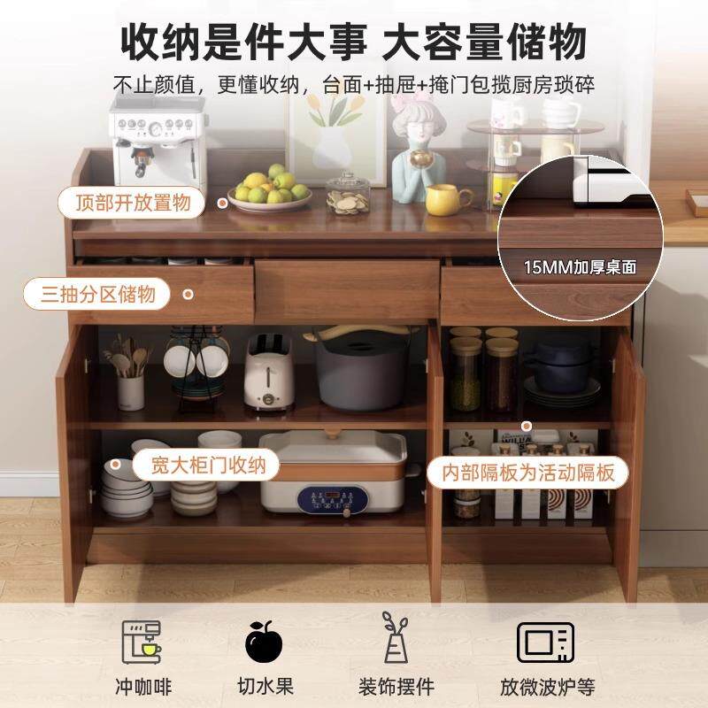实木色落地餐边柜靠墙一体柜子储物柜客厅置物边柜收纳柜厨房橱柜