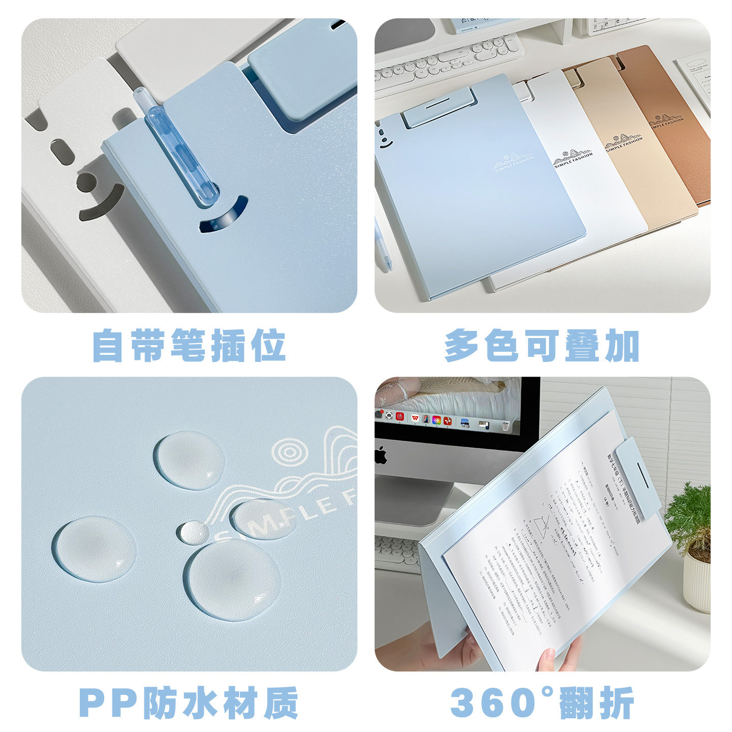 色系文件夹A4资料夹小学初中生专用高颜值试卷收纳夹板写字垫板