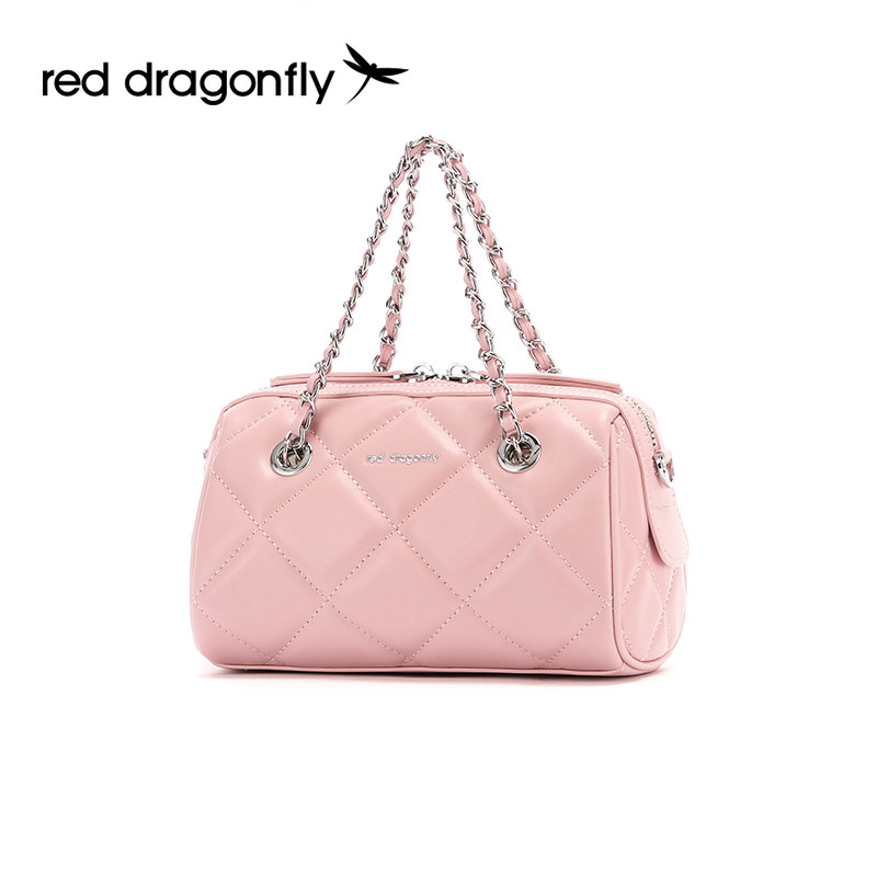 红蜻蜓菱格链条包女式2025新款生日礼物小香风枕头包斜挎保龄球包