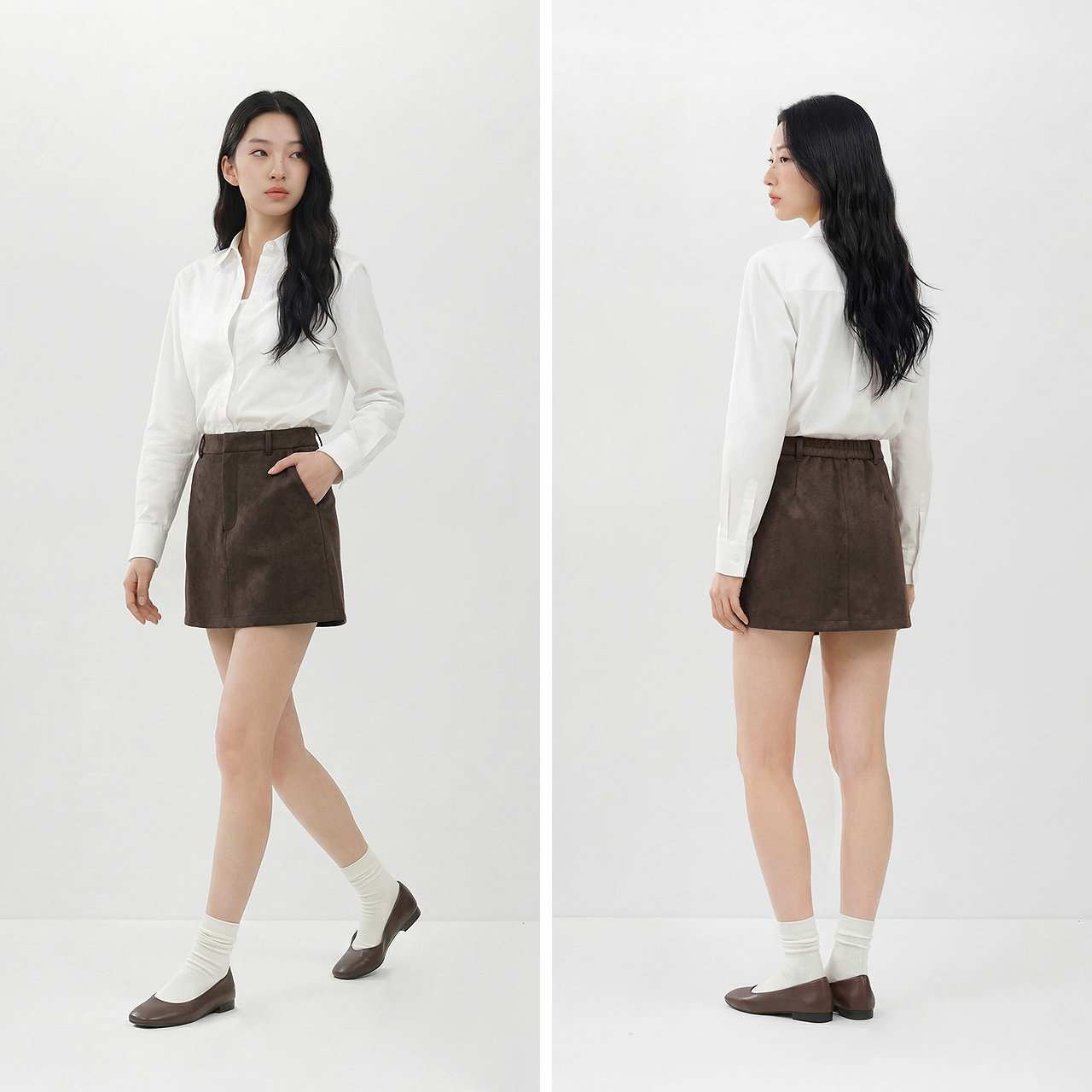 商场同款森马半身裙女磨毛纯棉长裙2025秋新款纯色伞裙百搭20002