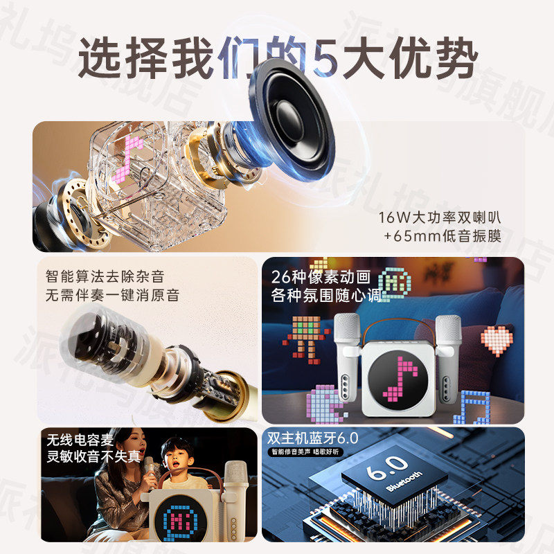 派礼坞k歌音响麦克风一体式家庭ktv套装无线蓝牙音箱家用卡拉ok