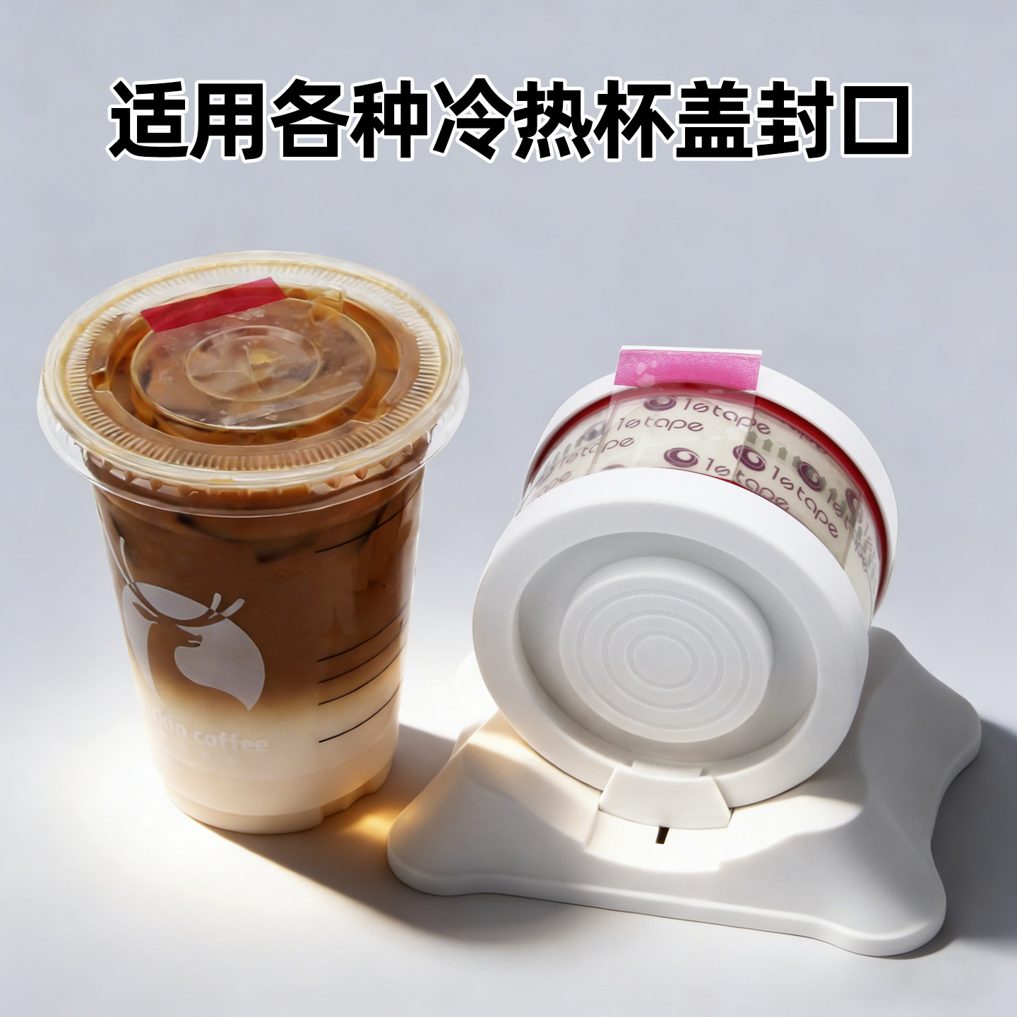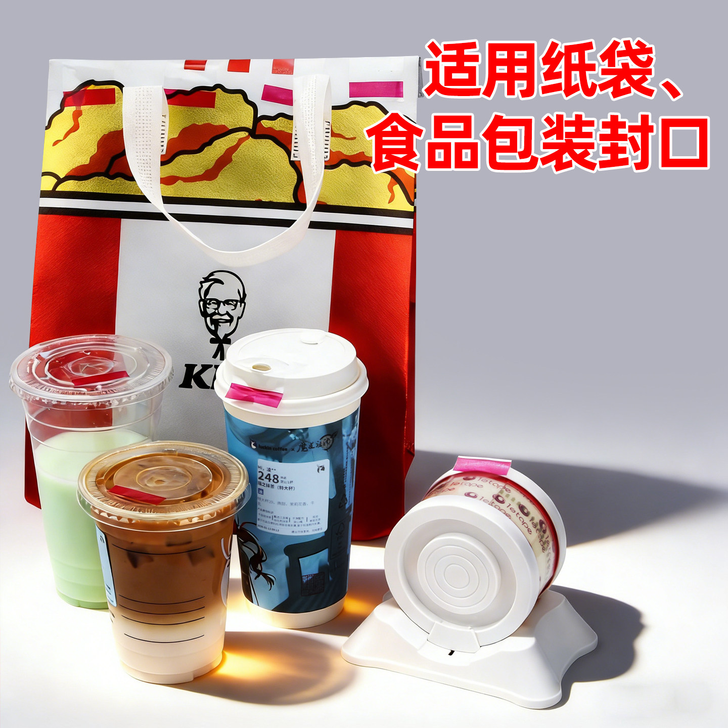 易撕贴封口贴胶带奶茶店烘焙咖啡饮料杯口杯盖食品外卖封签包装密封防漏封口胶带饮品三明治金透明索引贴底座