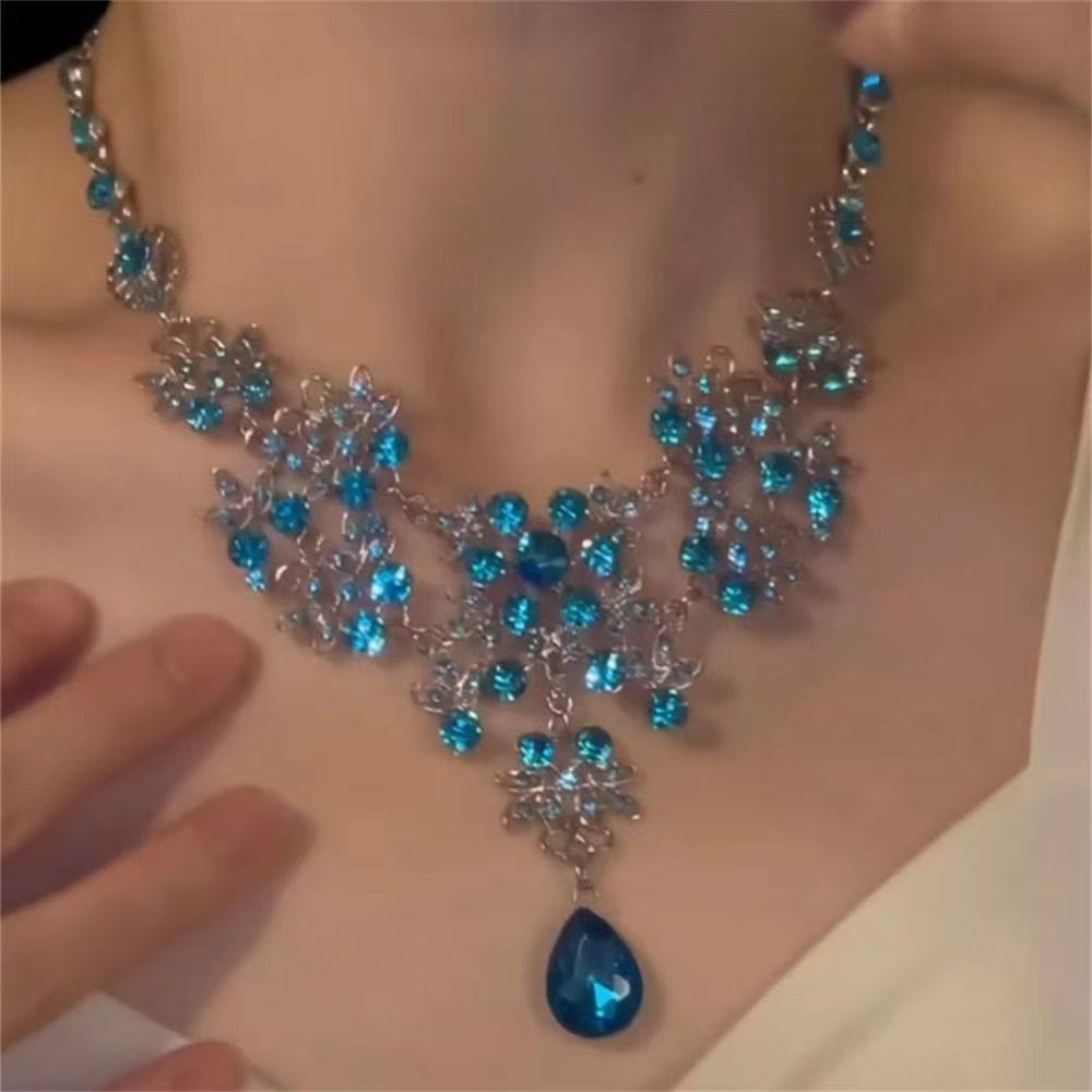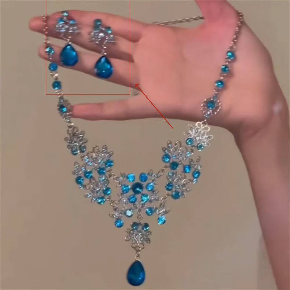 zoozmomo超闪蓝色水滴锆石项链套装女高级感晚宴礼服配饰锁骨链潮
