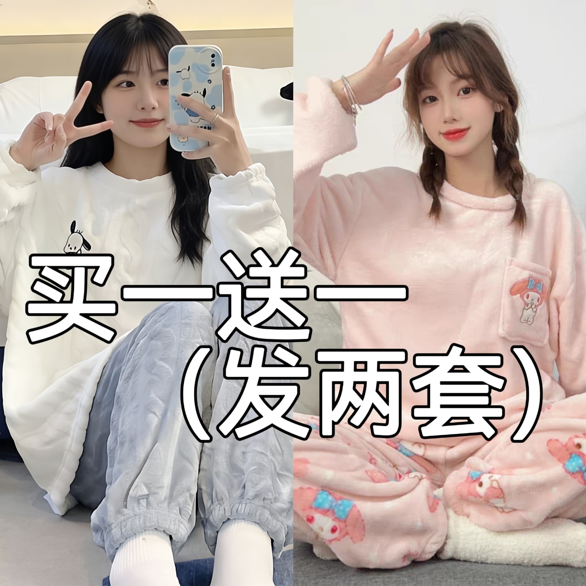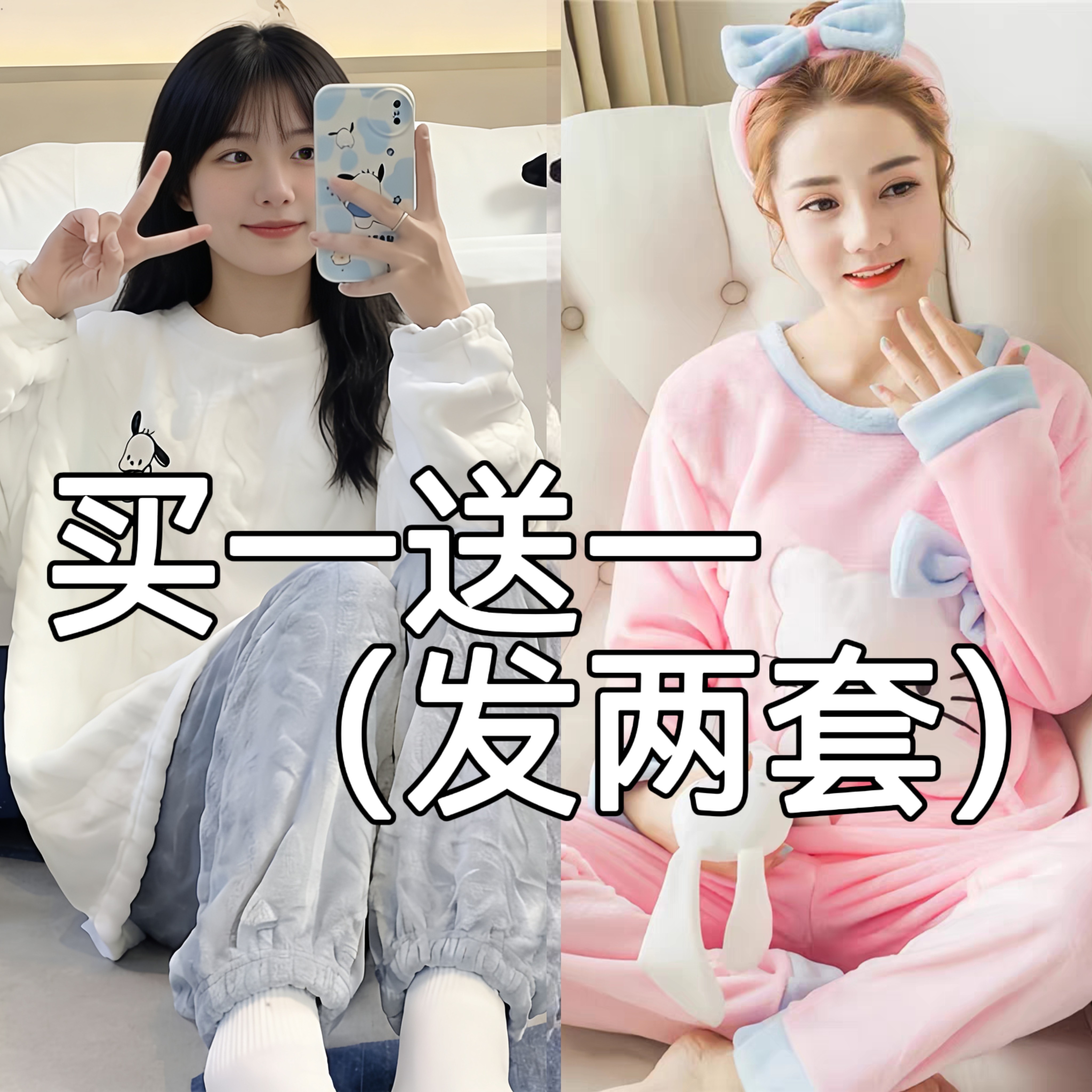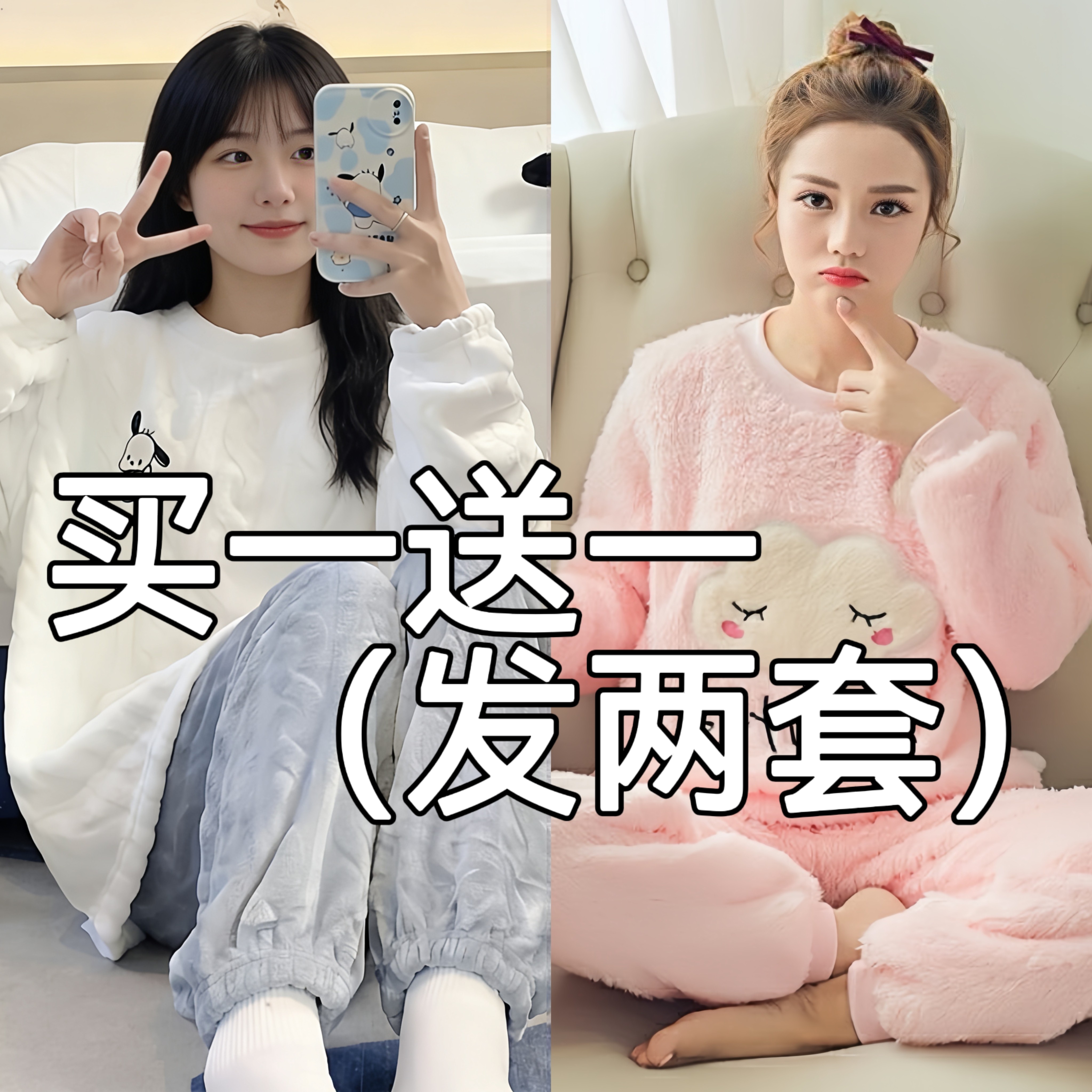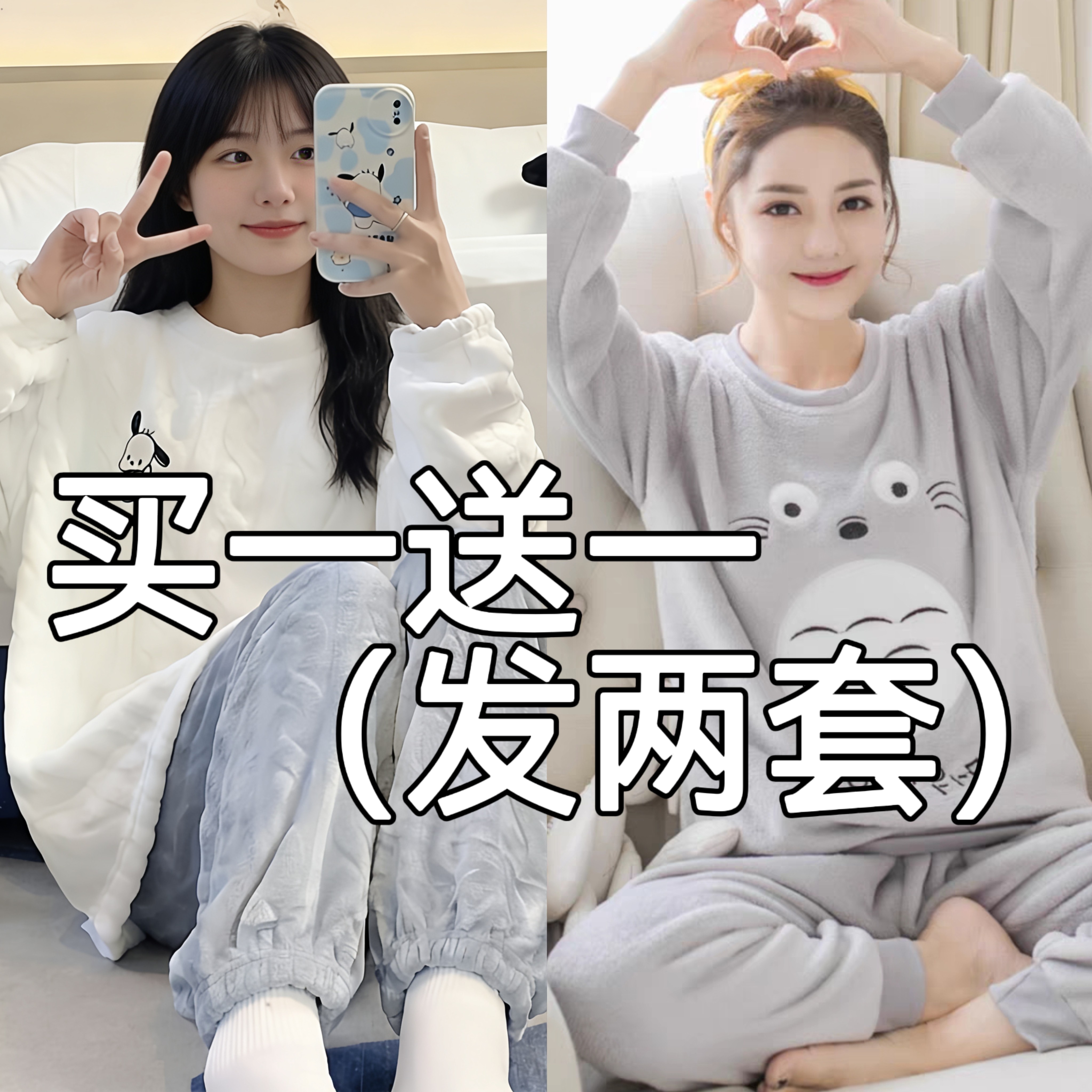 秋冬季新款法兰绒睡衣女士可爱外穿加厚大码珊瑚绒保暖家居服套装
