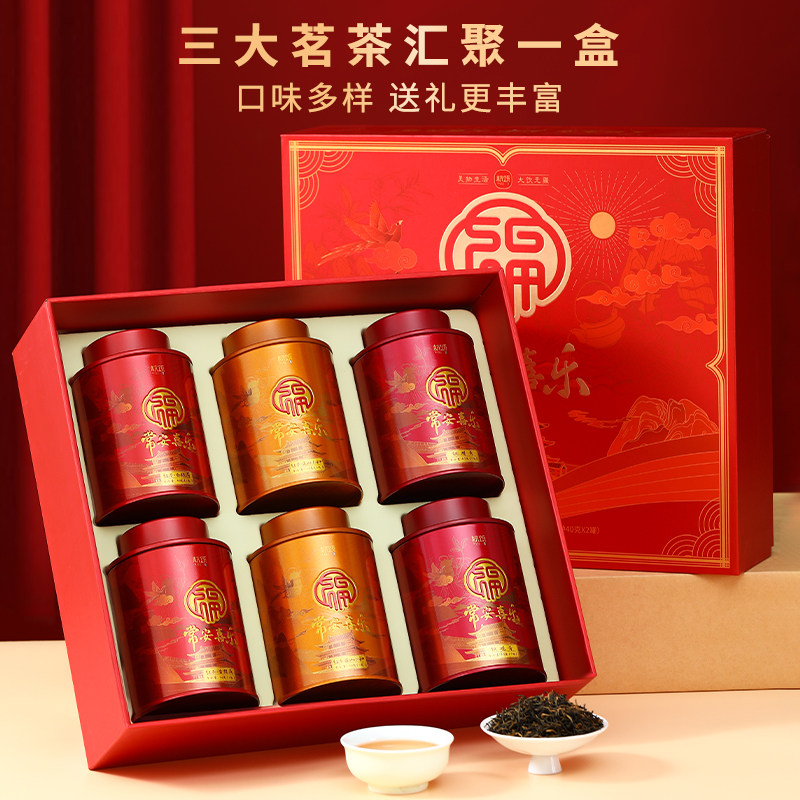 四大茗茶叶礼盒装金骏眉大红袍铁观音小种红茶浓香小罐茶送礼父亲