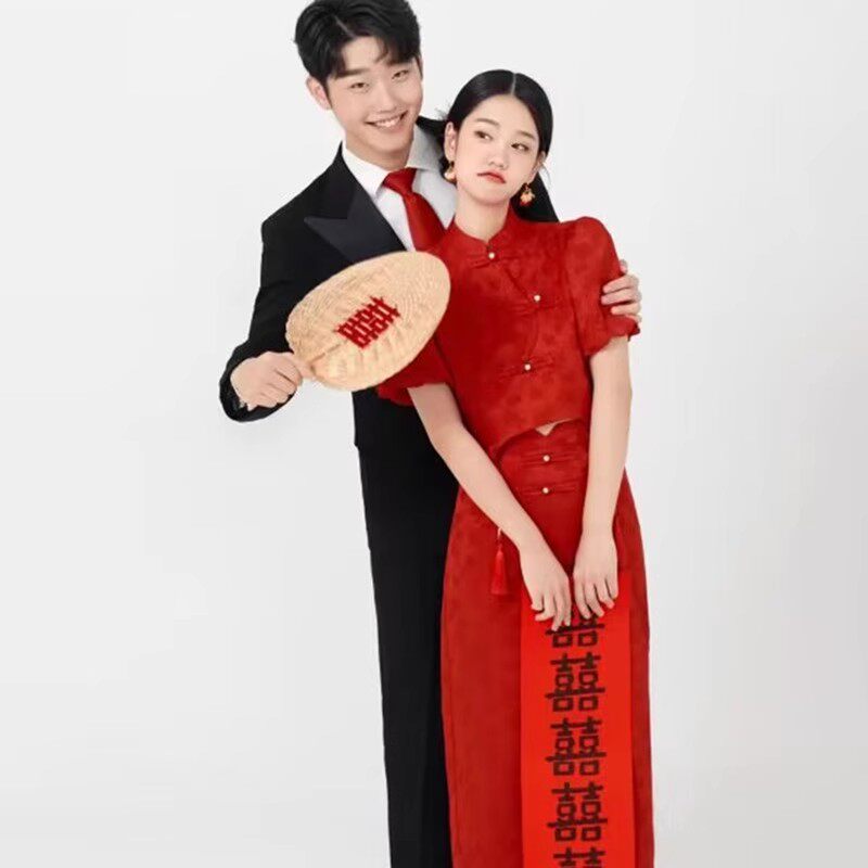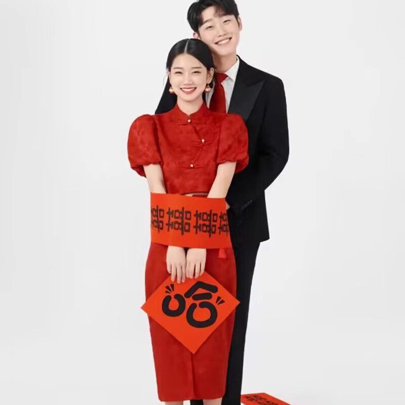 中式秀禾婚纱摄影道具喜喜喜字手持对联创意影楼拍照装饰结婚用品