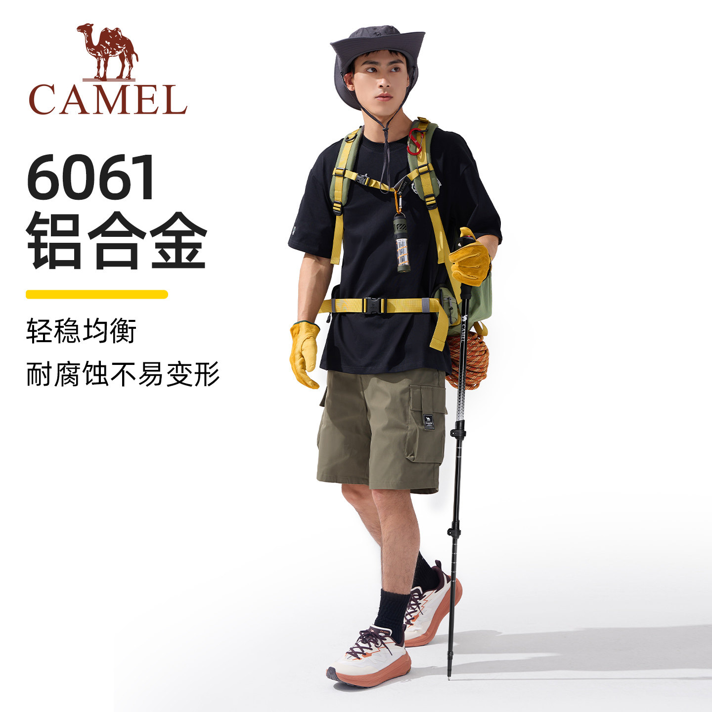 骆驼专业户外登山杖铝合金三节外锁伸缩徒步登山越野爬山装备