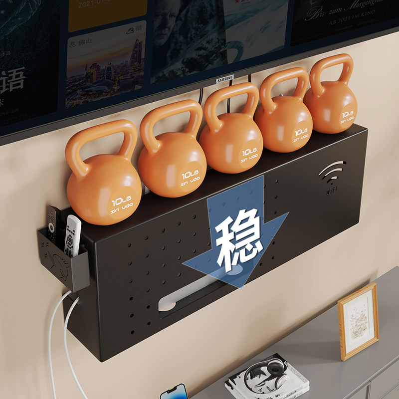 wifi墙壁电视挂墙上机顶盒路由器放置架置物收纳盒免打孔托架支架