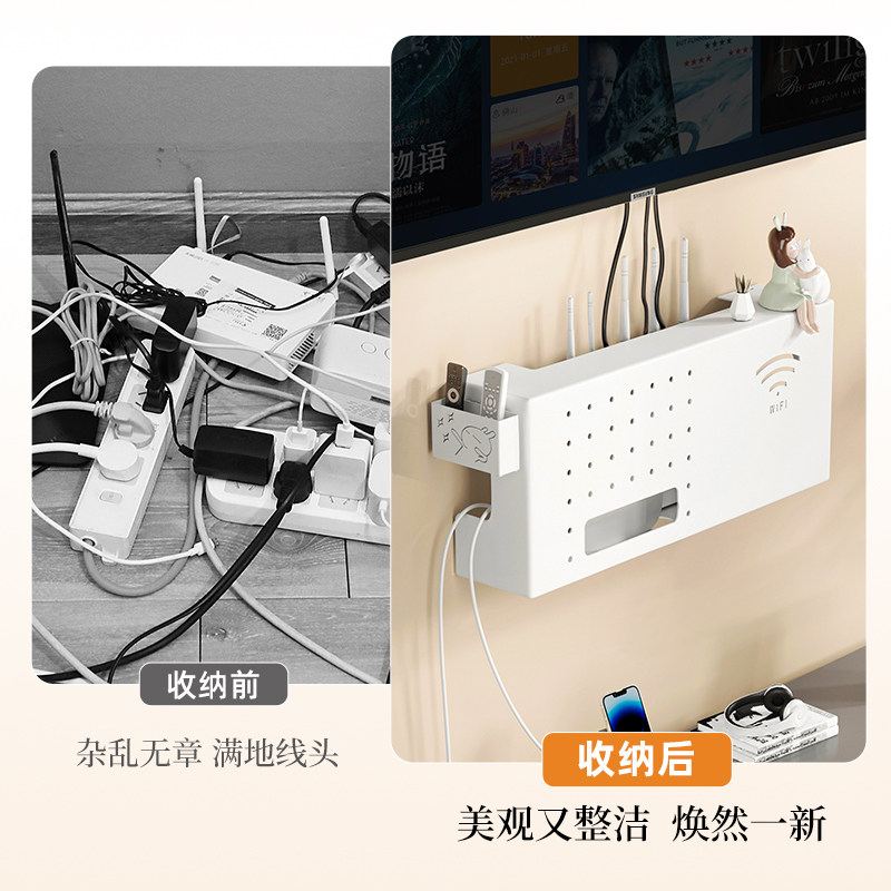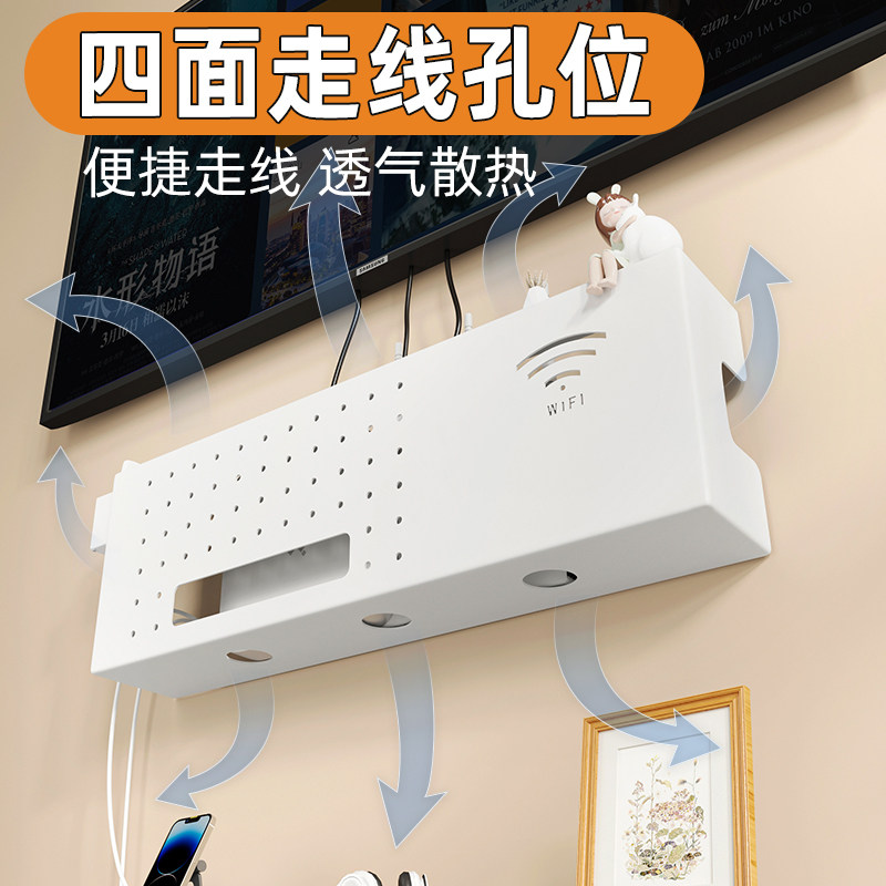 无线wifi路由器收纳盒机顶盒免打孔壁挂置物架墙上遮挡箱式插线排