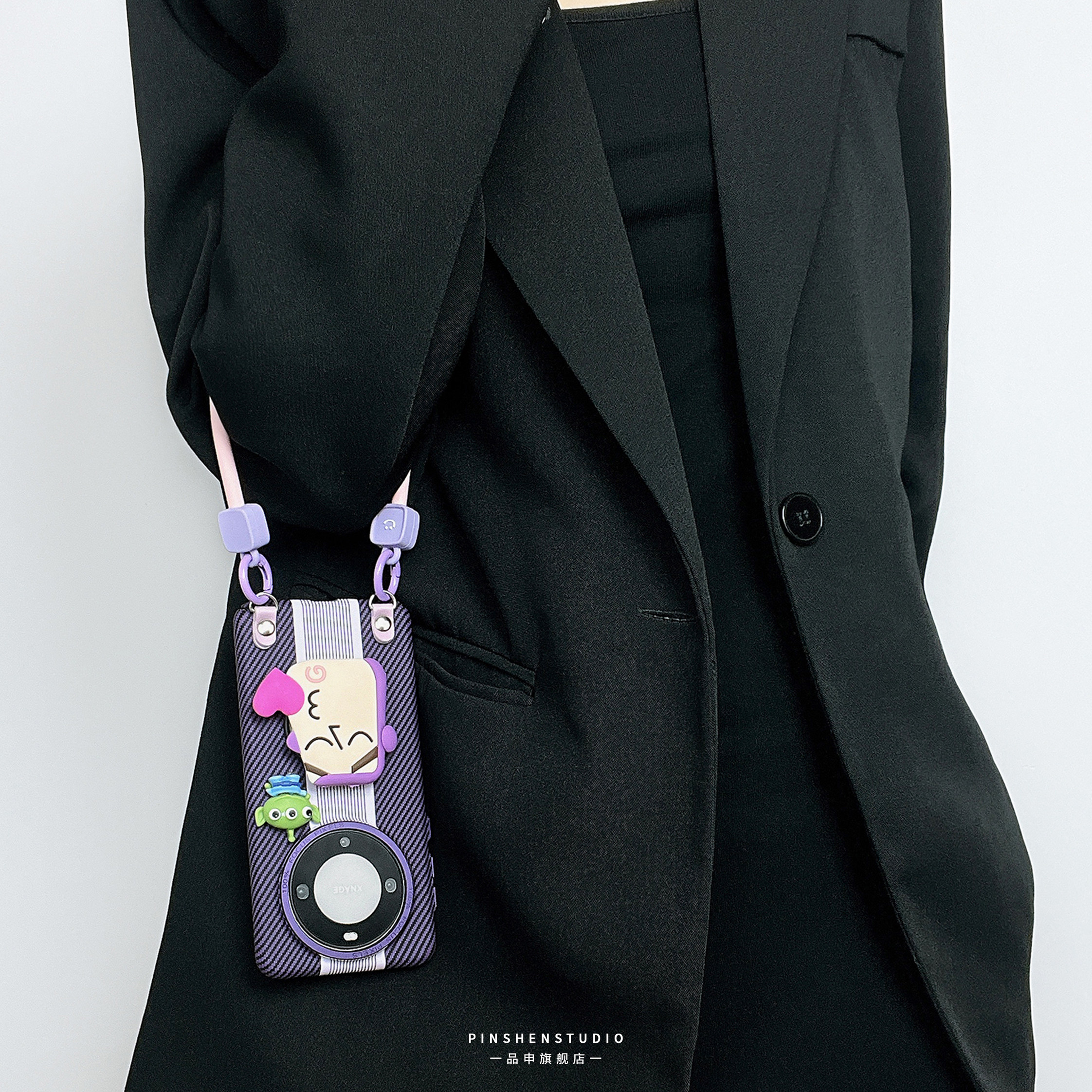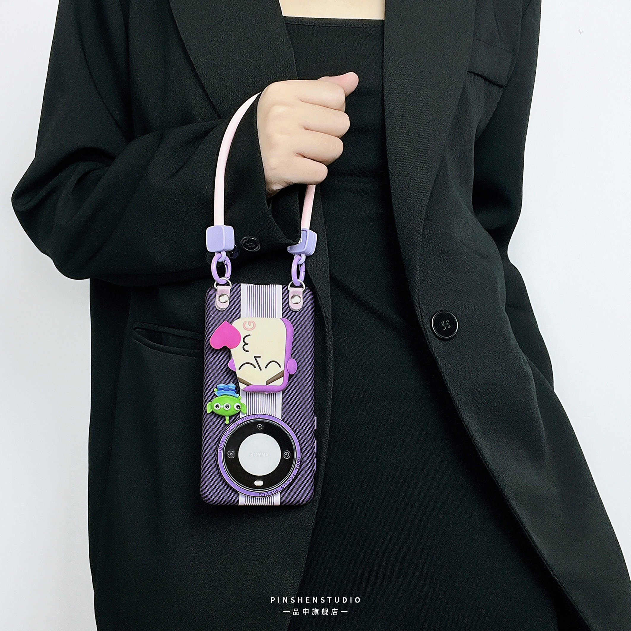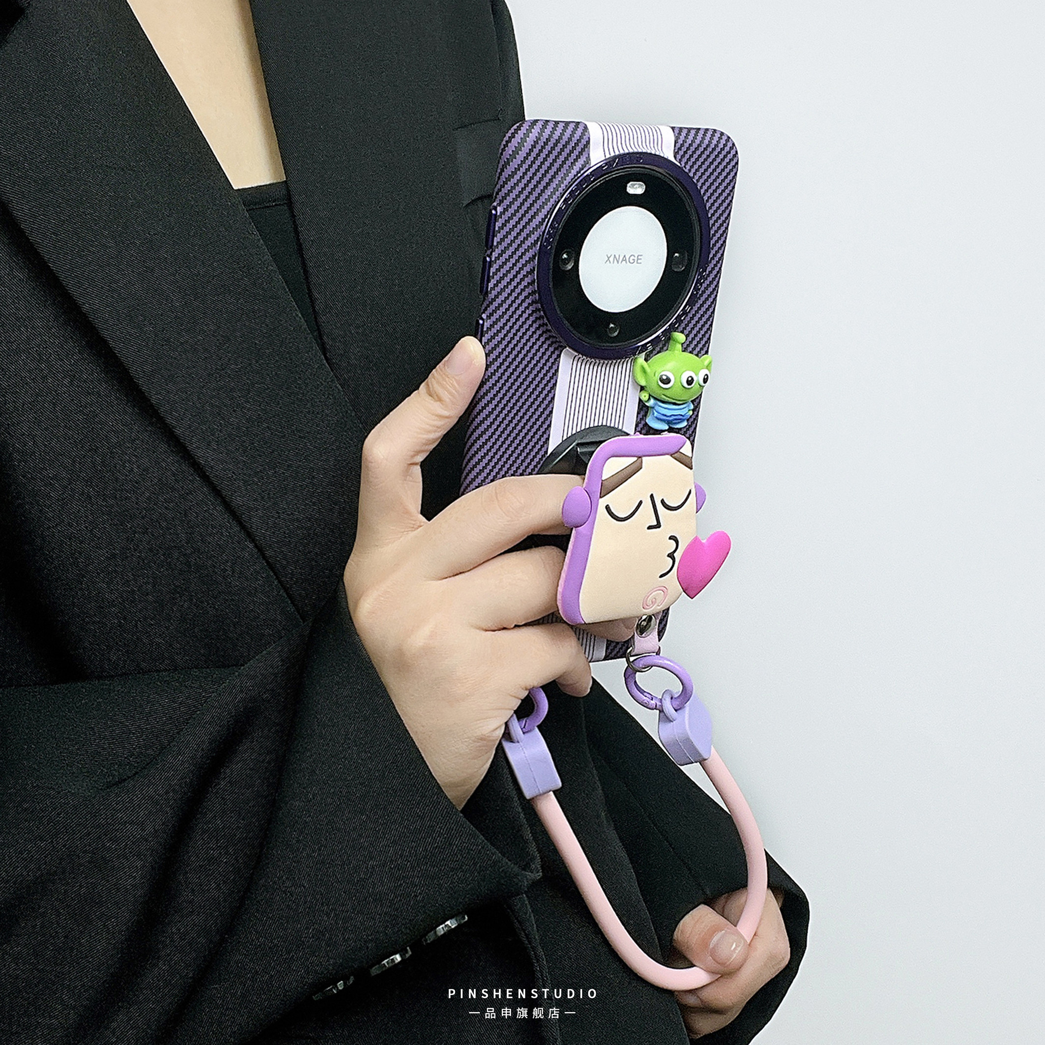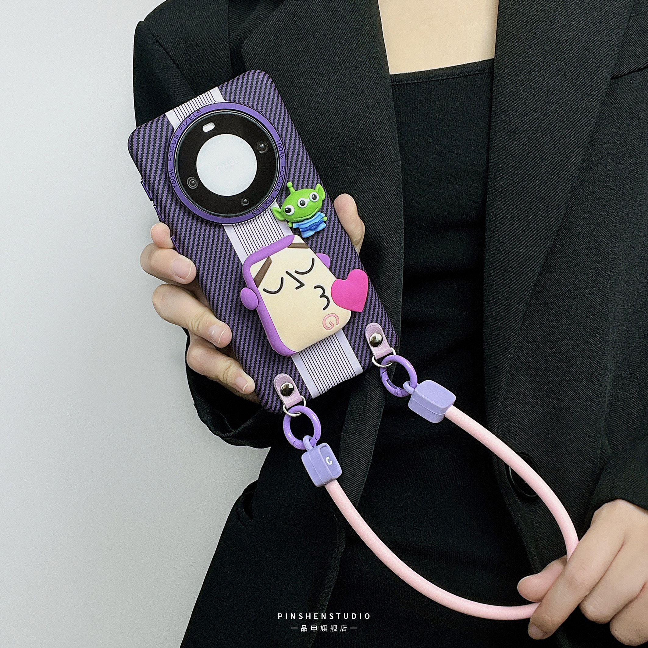 品申原创小众暗夜紫卡通怪兽超人支架硅胶手提适用华为mate80pro手机壳个性挂绳ins新款iphone17promax保护套