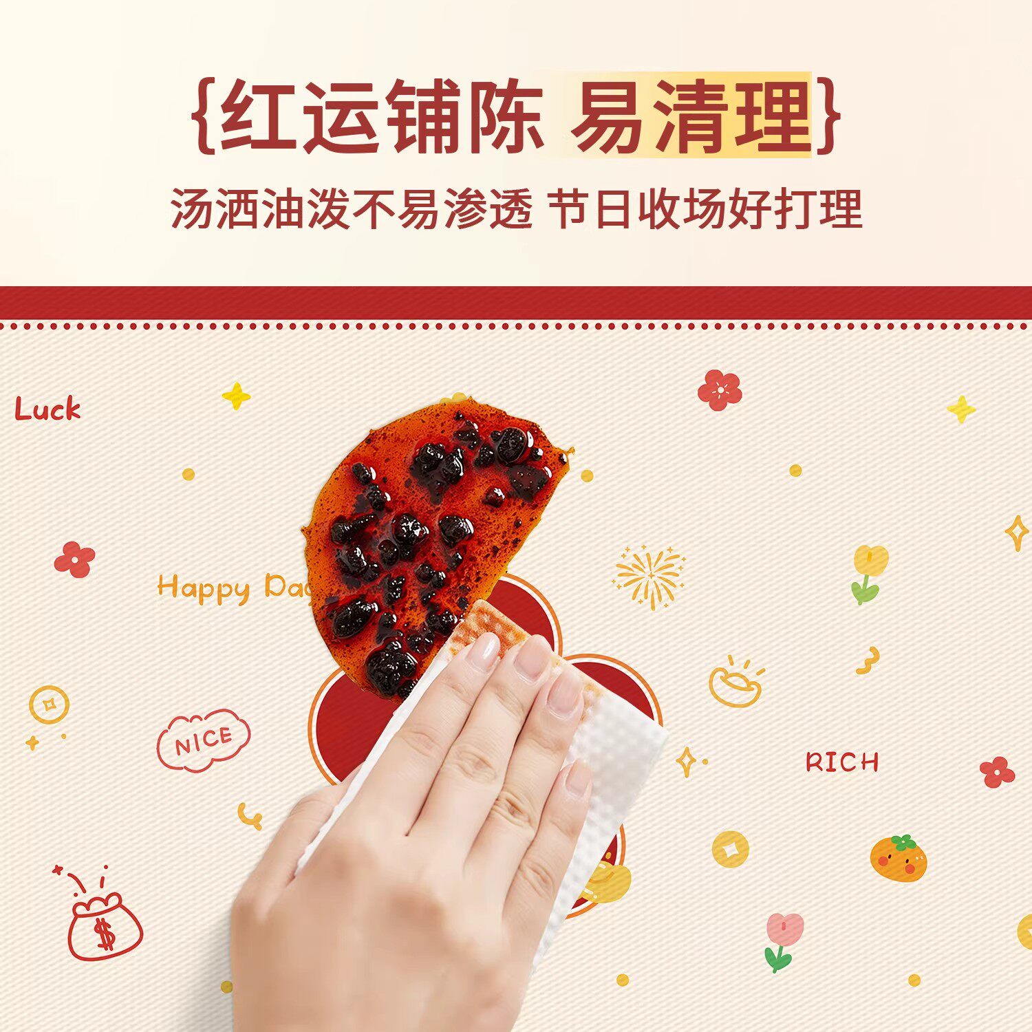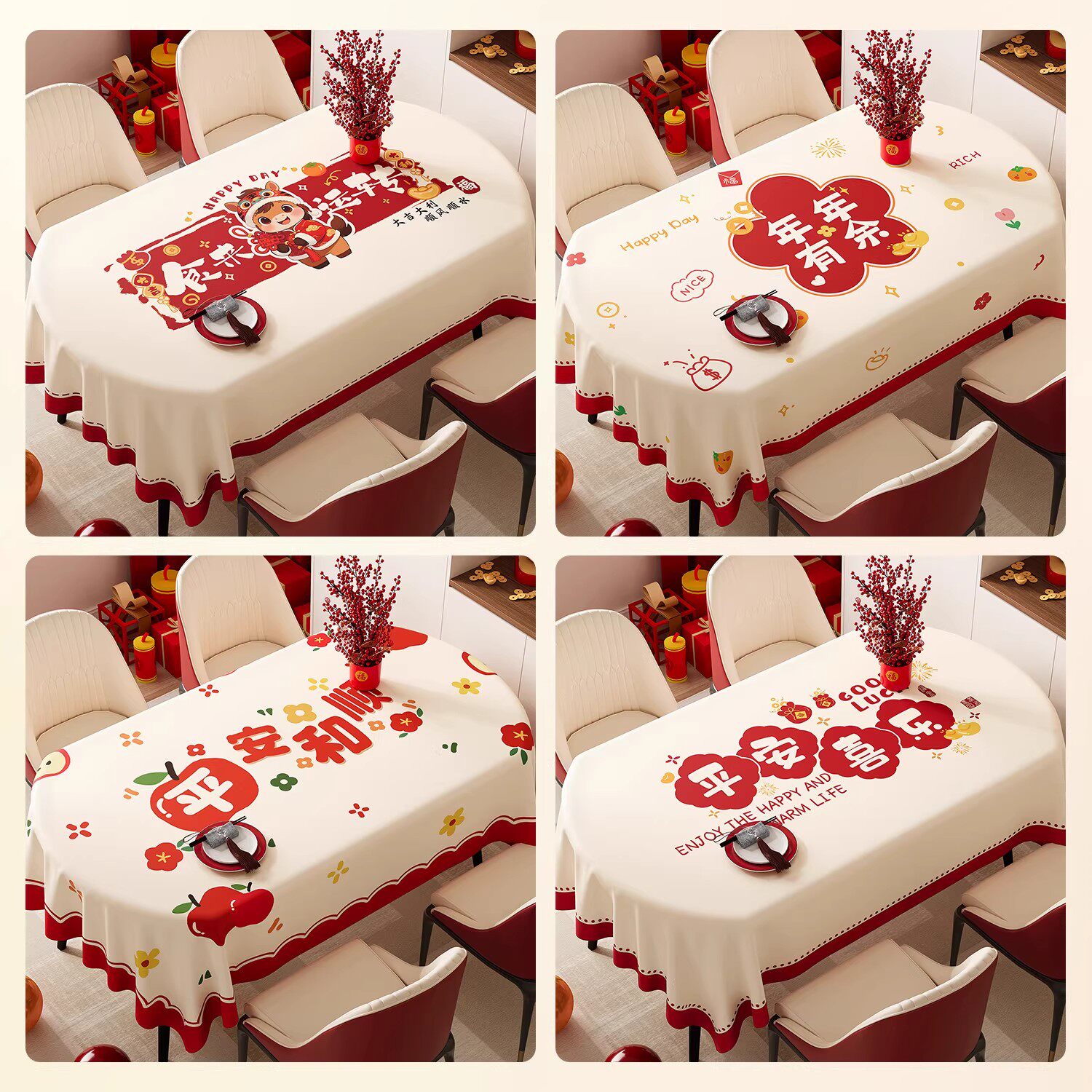 新年桌布防水防油免洗餐桌布轻奢高级氛围感马年红色桌垫茶几台布