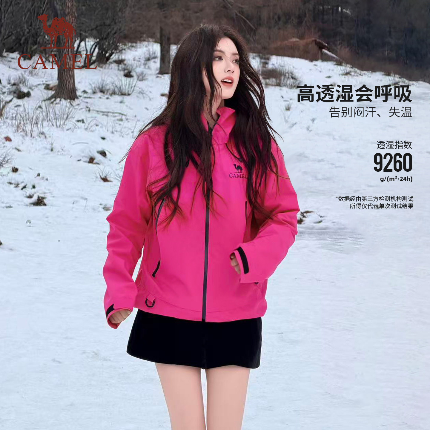 【春日粉】骆驼户外粉色冲锋衣男女款三合一鹅绒内胆羽绒服外套冬