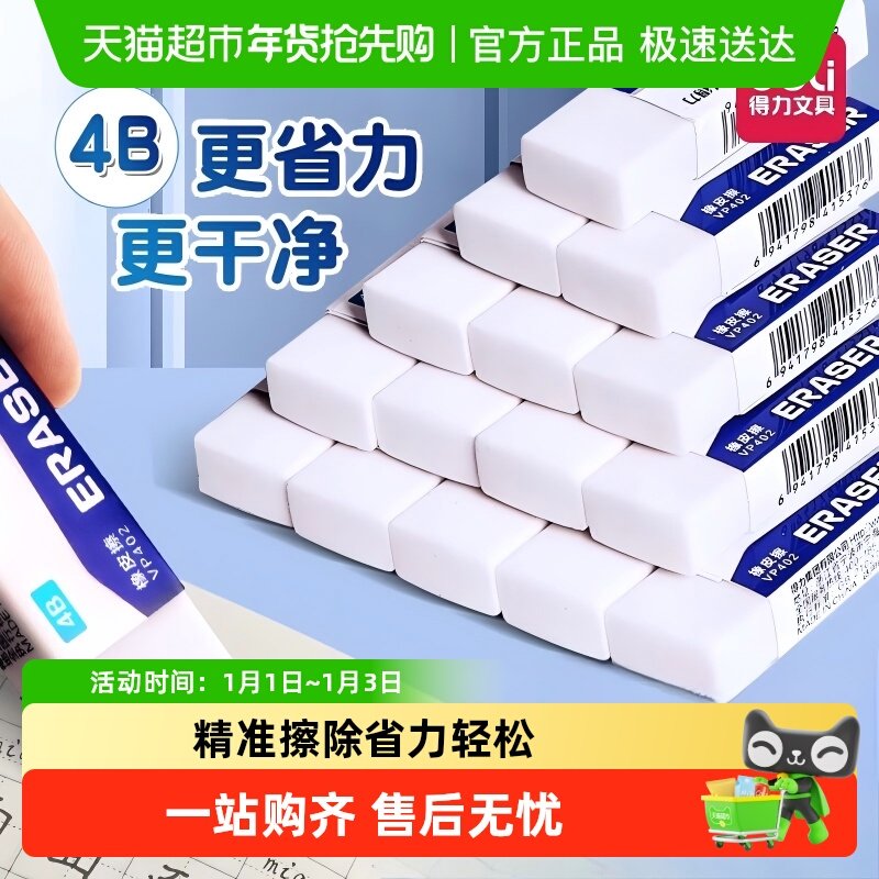 得力4b橡皮擦小学生用儿童安全无毒像皮擦不留痕擦字成线无屑干净