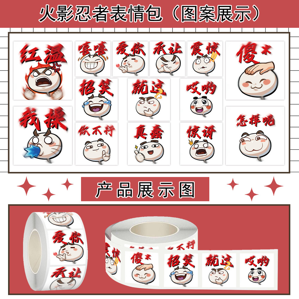 1000贴火影忍者气泡表情包卷卷贴纸搞笑趣味抽象热梗文字封口贴画