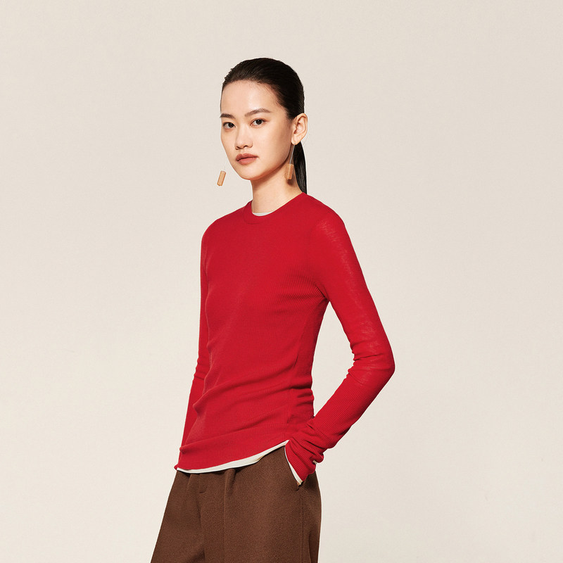 LESS圆领新年红色薄毛衫女羊毛修身套头内搭打底针织衫2OB313840