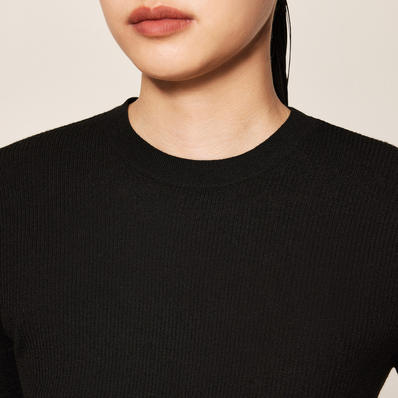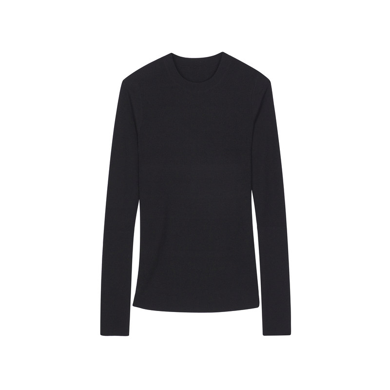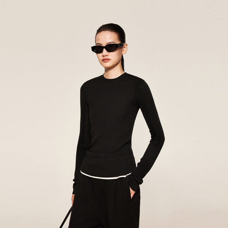 三福长袖上衣2025新款秋季圆领修身针织衫简约纯色内搭打底衫女装