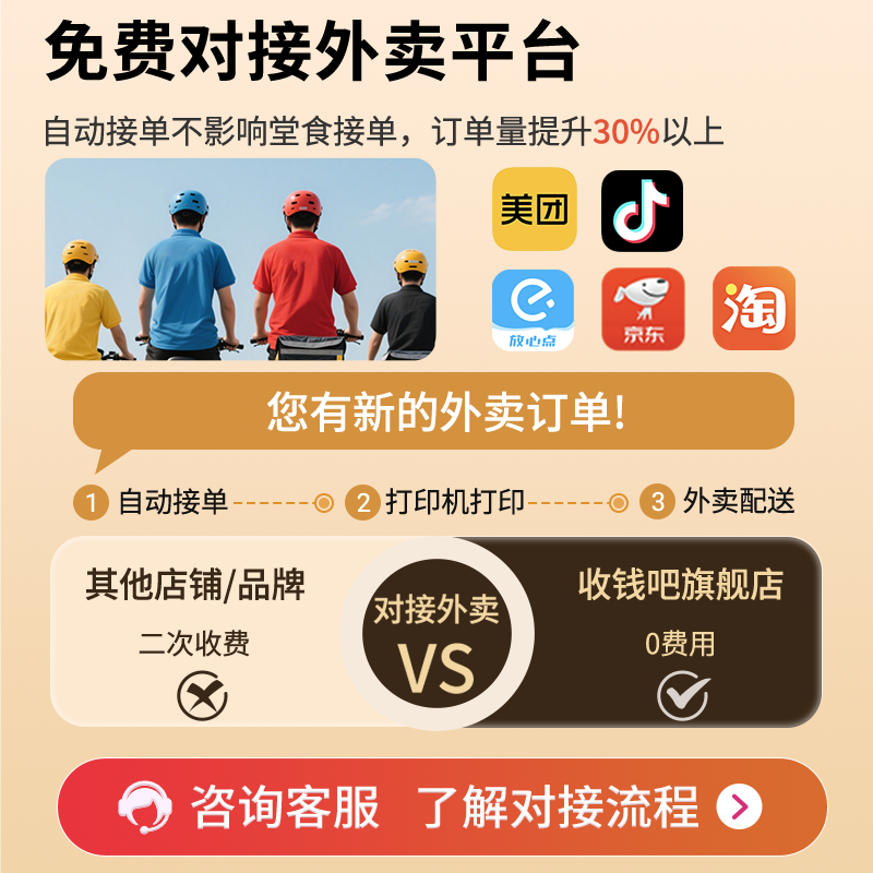 收钱吧收银机一体机扫码点餐美团外卖接单商用餐饮收银系统管理一体机奶茶快餐店团购核销专用收银一体点餐机