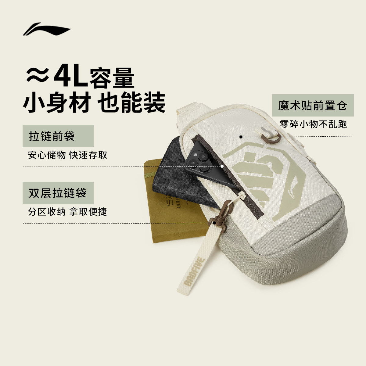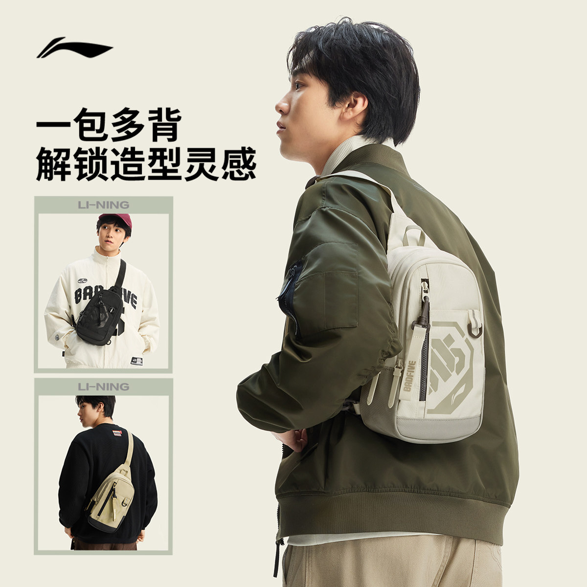 李宁斜挎单肩包男女士官方小型户外多功能胸包休闲轻便运动腰包