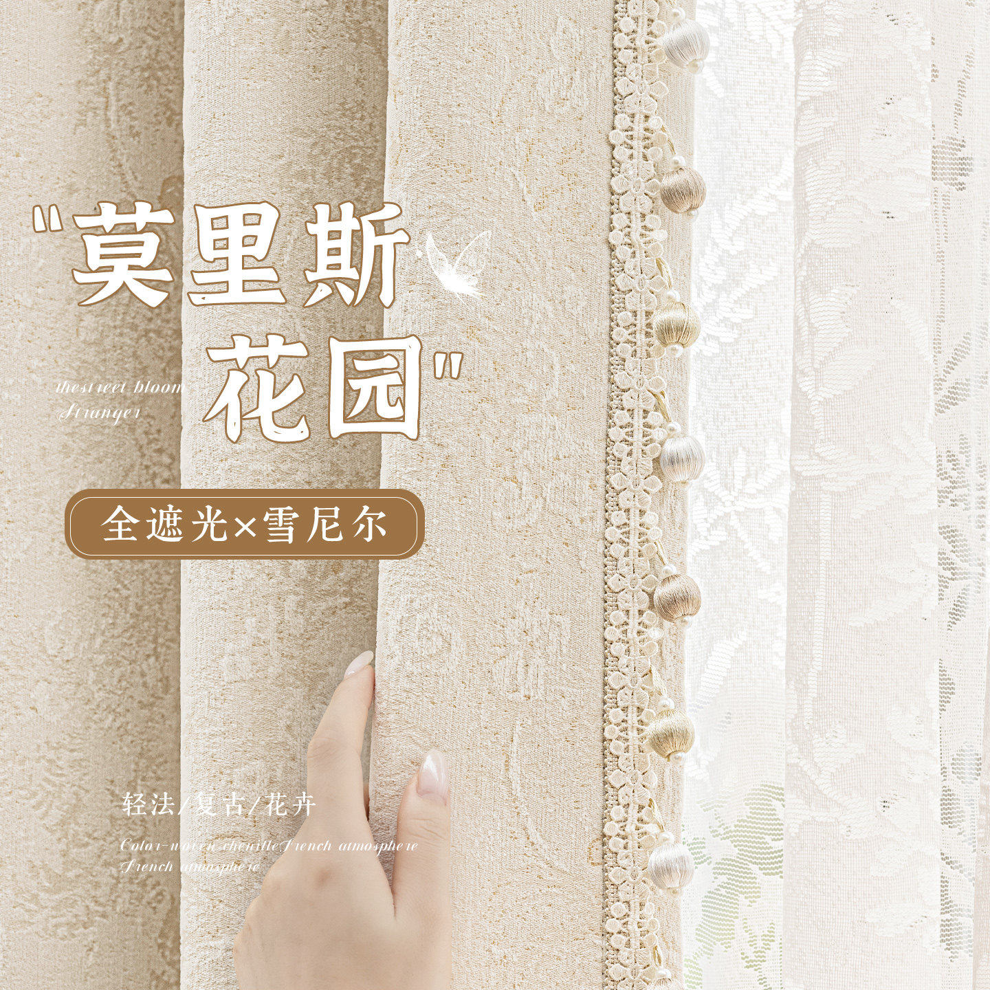 遮光窗帘雪尼尔阳台遮阳帘防晒隔热隔音窗户莫里斯花法式2026新款