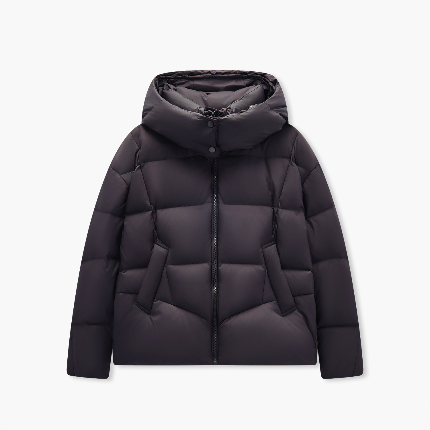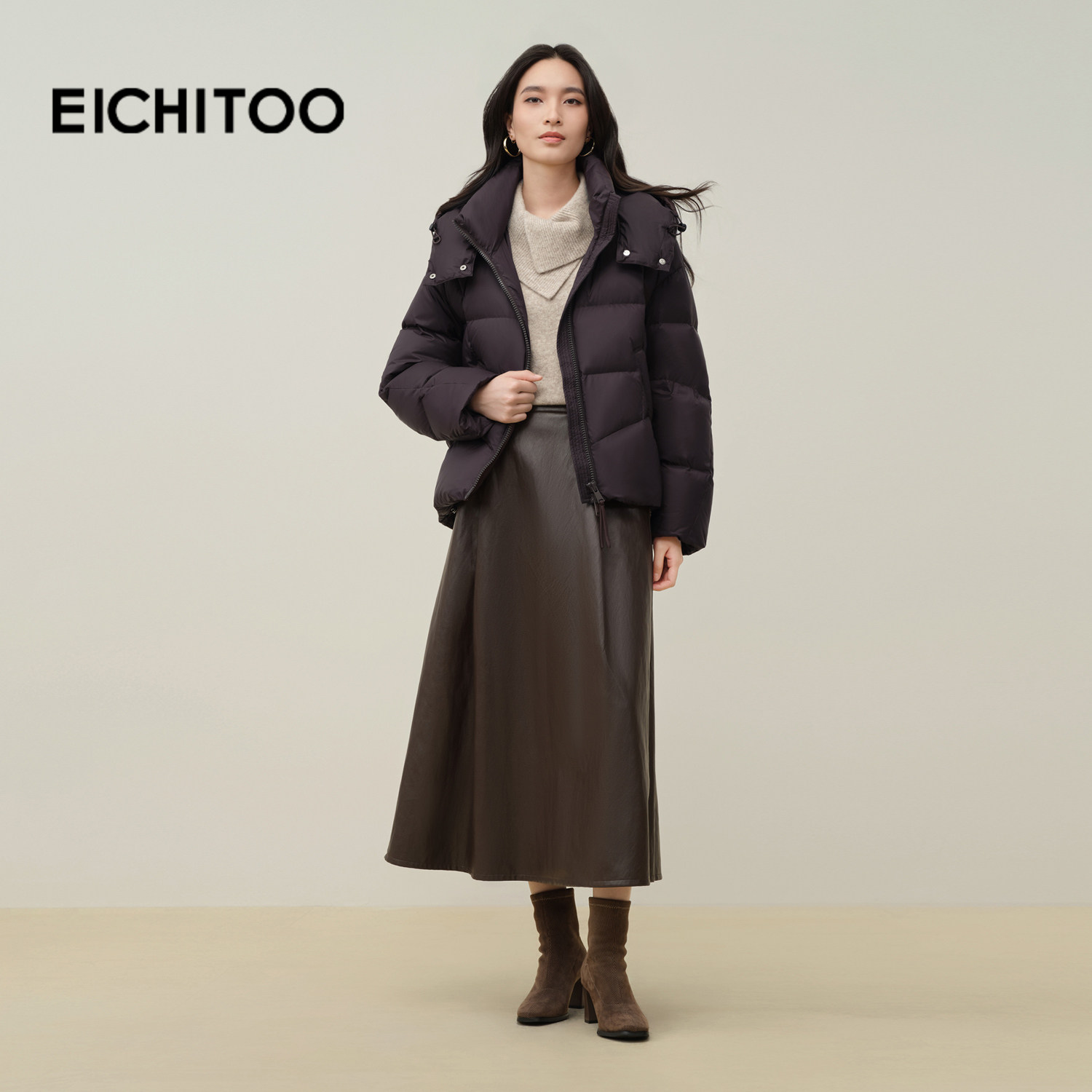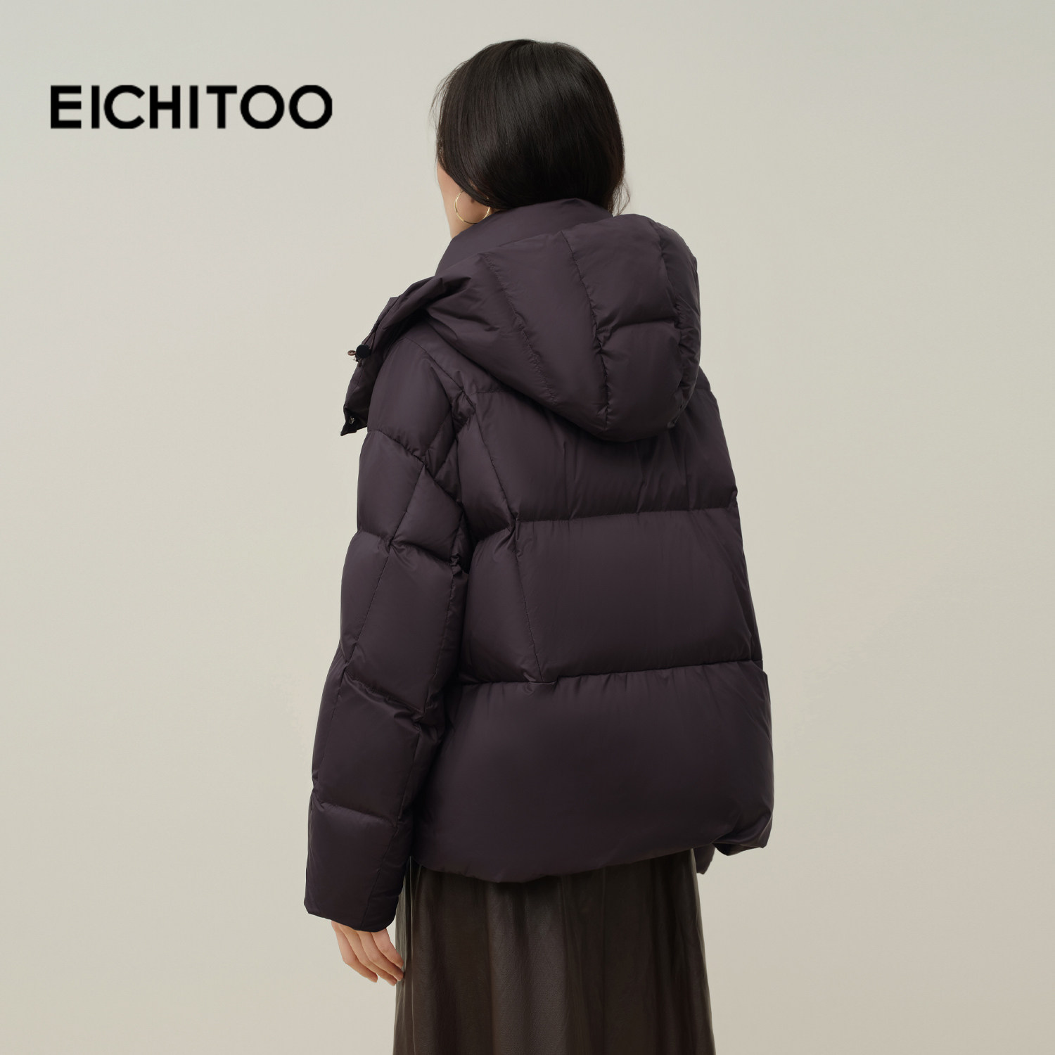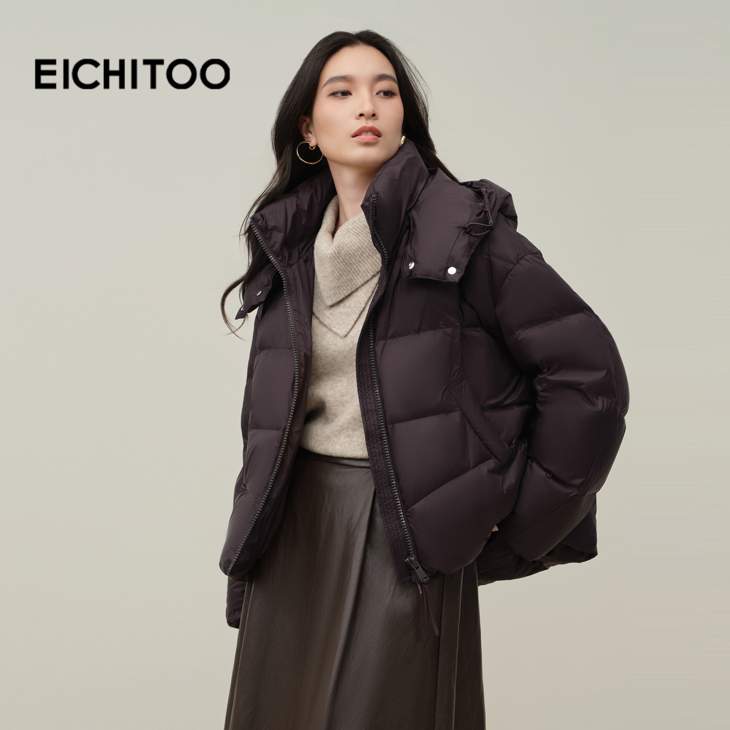 爱居兔90鸭绒立领连帽羽绒服女2025年冬季新款龟背廓形保暖短外套